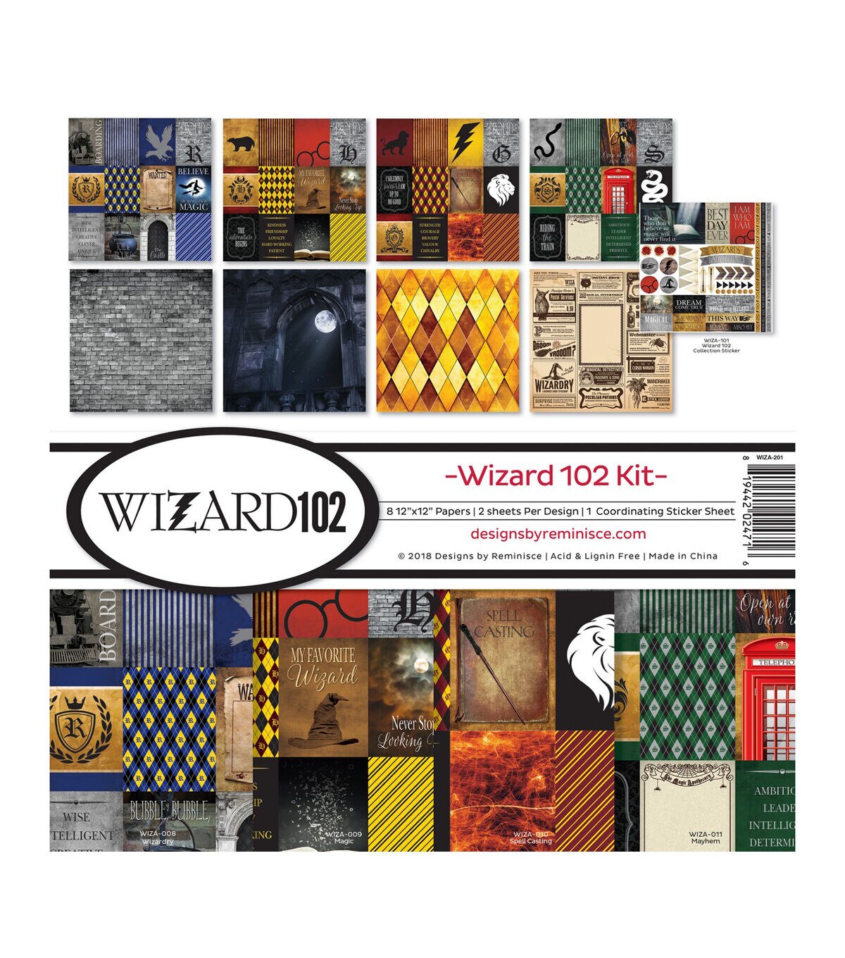 The Reminisce Wizard 102 Collection Kit will make a great gift for someone who loves magic and mystery. It will make the perfect addition to your next paper crafting project. This pack contains eight 12 x 12-inch double-sided sheets in four designs, two of each design, and one 12 x 12-inch coordinating sticker sheet. These sheets are acid and lignin free.