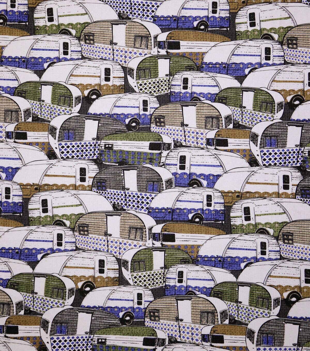 Retro Campers Cotton Canvas Home Decor Fabric