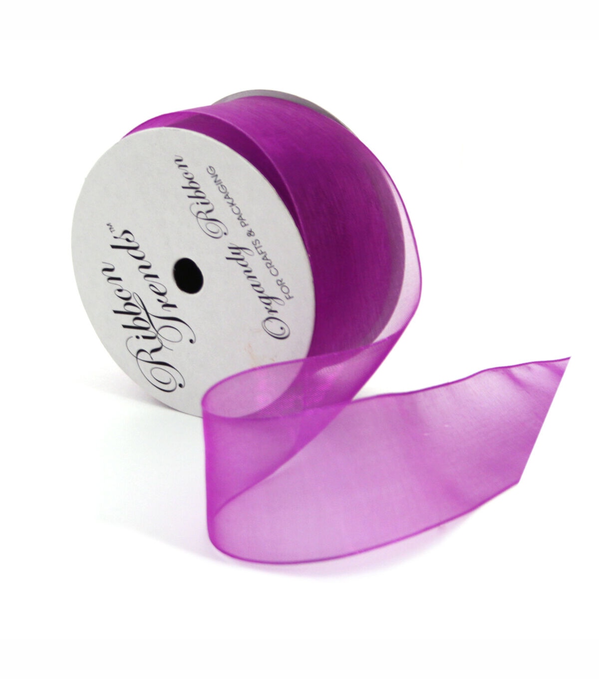 Dress dinner napkins, spoons, wine stemware and more using the Ribbon Trends Organdy Ribbon-Regal Purple. In purple, this organdy ribbon will jazz up the look of your DIY craft and year round seasonal arrangements. You can also use it to trim your dresses, quilts, hair bows and more with style.