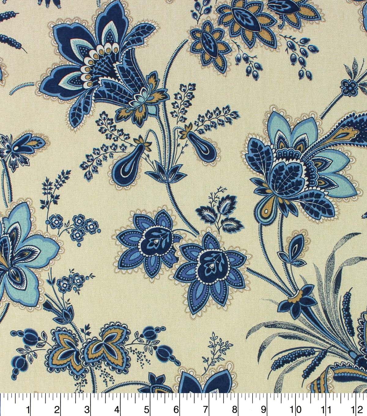 Richloom's 100% Cotton Canvas prints are a great way to update your Home Decor look and perfect for any DIY project including window treatments, pillows, poufs, table accents, and headboards! Or try our 100% Cotton printed fabrics for handbags, totes, bulletin boards, or novelty decor items! Pattern Adeleta Pacific is a detailed all over small scale jacobean with a soothing all blue color combination perfect for use in coastal decor or great as an accent for any neutral, gray or navy backdrop.