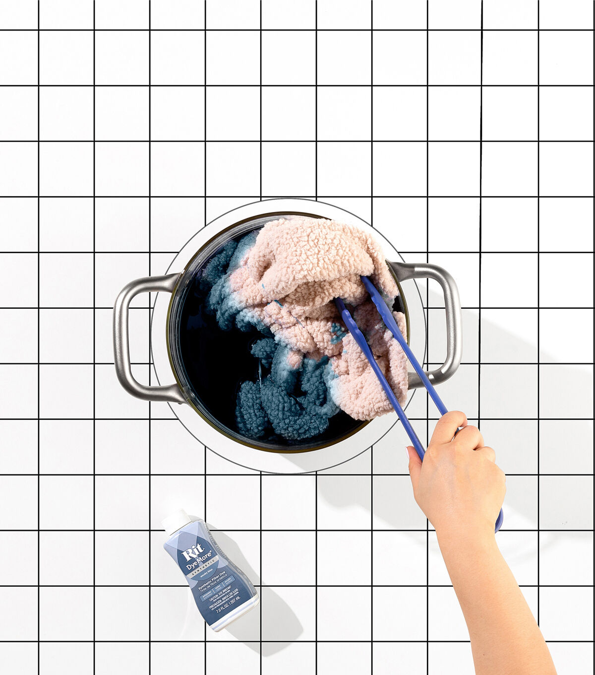 - Due to the complexity of dyeing synthetic fabrics, you must use this dye in a stainless steel pot on your stove top to maintain a high water temperature throughout the duration of dyeing. Cannot be used in a washing machine