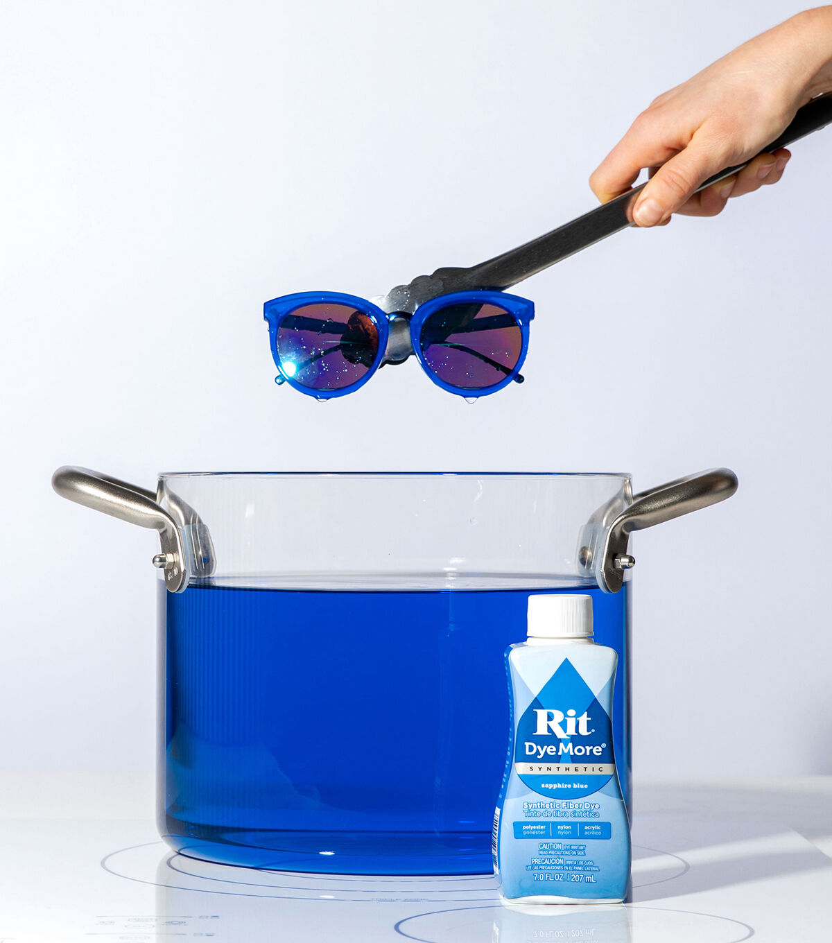 Rit DyeMore Synthetic Fiber Dye now makes it possible to dye synthetic fabric and fabric blends, which include anything with 35% or more polyester, acrylic, acetate or nylon. The versatile, easy-to-use and non-toxic liquid dye is perfect for rejuvenating faded clothing and décor, upcycling, hiding laundry accidents and so much more. Looking to create something unique? Rit has been tie-dyeing clothing for decades. It’s also the perfect tool to create an ombré, dip dyed or shibori pattern. It can even dye 3D printed items, lacrosse sticks, wigs, faux fur and most plastics. Whether you are dyeing a garment in a color you love (but wasn’t available to buy), creating a costume or decorating for a party, all you need is a stainless steel pot to get started. With 250+ color recipes available on the Rit's website, it is almost certain you’ll find the right color for your needs. Please note: Due to the complexity of dyeing synthetic fabrics, you must use this dye in a stainless steel pot on your stove top to maintain a high water temperature throughout the duration of dyeing. Cannot be used in a washing machine.