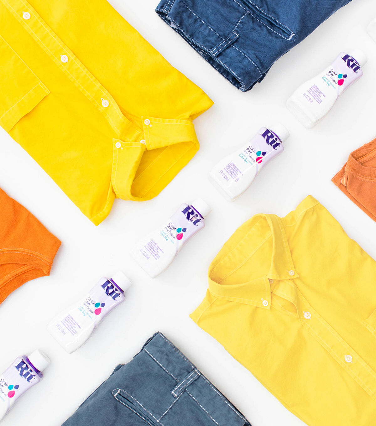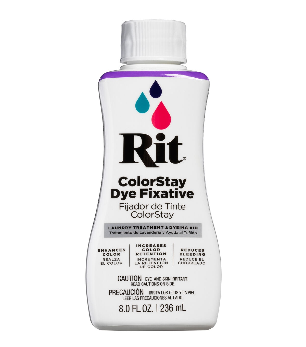 We want your dye projects to stand the test of time. That’s why we created Rit ColorStay Dye Fixative, an easy-to-use solution designed to lock in color, keeping your fabrics looking their best and brightest for the long run. It reduces bleeding, fading and even enhances the color of your project. Works best on cotton, linen, rayon, ramie or fabric blends that contain these fibers. Use after dyeing to lock in color. Or use it immediately after a tie-dye or dip-dye project to prevent dye from bleeding into white areas. It is even effective on commercially dyed fabrics. Whatever your purpose, Rit ColorStay Dye Fixative assures you will get lasting color for the long run.