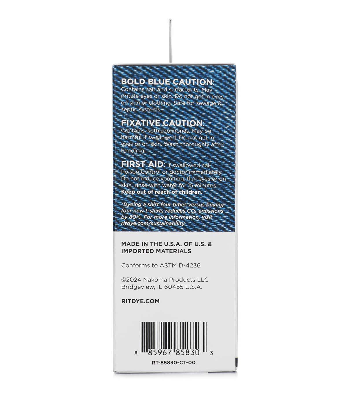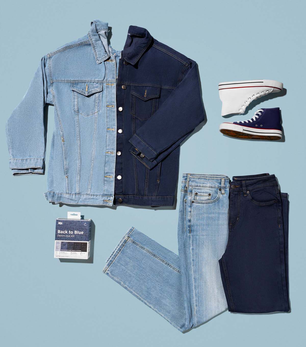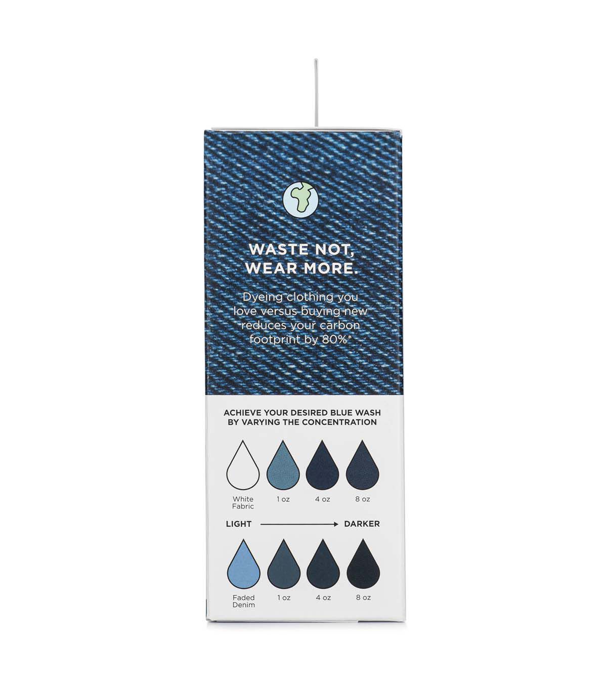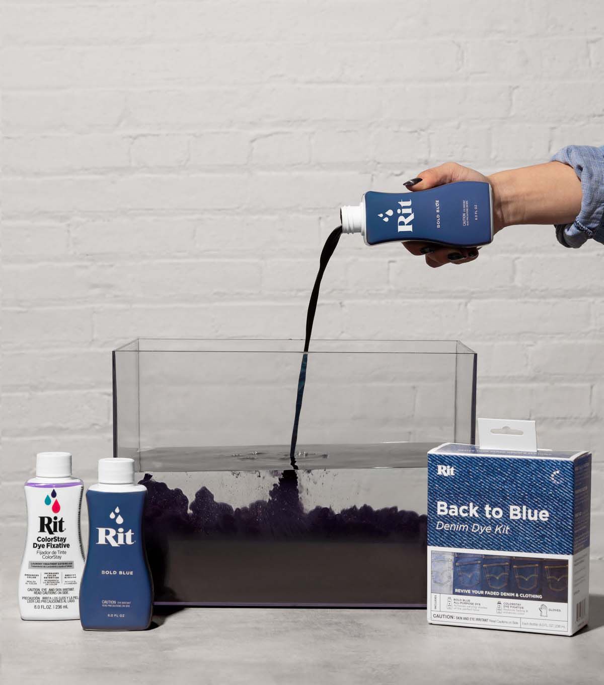 Are your favorite jeans faded? Now with Rit’s Back to Blue Denim Dye Kit, you can restore faded denim back to a rich blue in just a few easy steps. Included in the kit is Bold Blue All-Purpose Dye, a versatile blue that can achieve varying shades of the perfect blue. Proudly non-toxic and safe for sewer and septic systems. The kit also includes ColorStay Dye Fixative, our secret weapon to reduce bleeding and fading. Plus, a pair of gloves to protect your hands. Looking to dye something besides denim? This kit can also be used to revive faded blue clothing and even overdye clothing of any color to a darker shade. Do your part to reduce your carbon footprint by dyeing clothing instead of buying new, which reduces CO2 emissions by 80%. All you need is a washing machine, plastic container or stainless steel sink to get started.