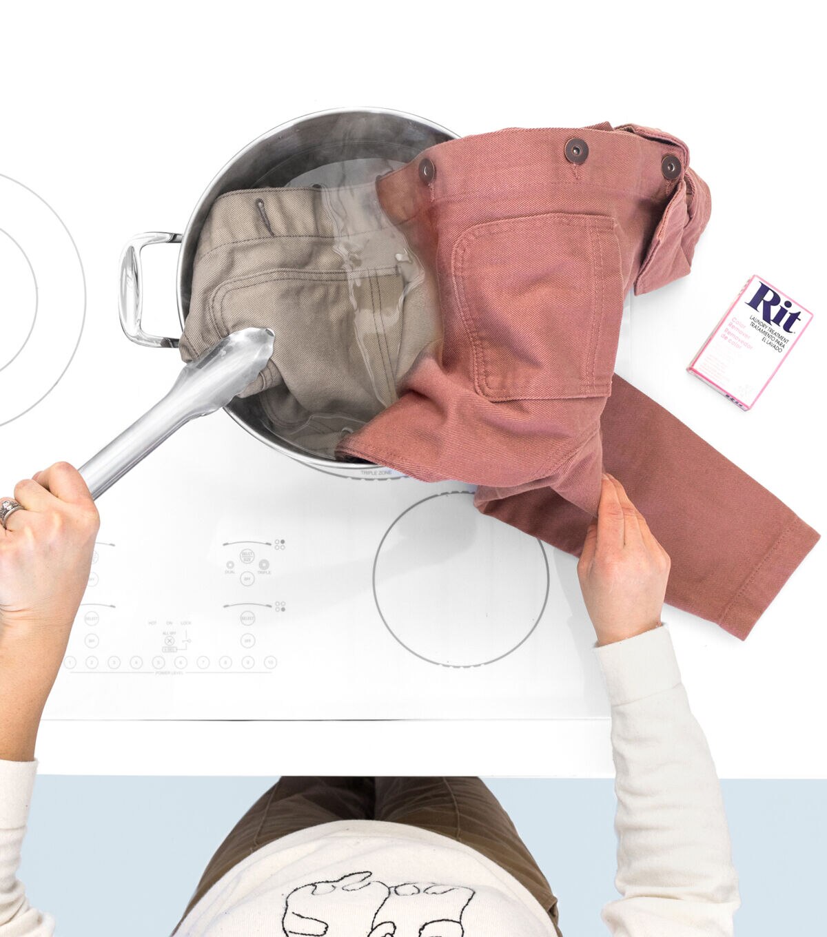 - Unlike traditional bleach, which contains chlorine that can damage fabric, Rit Color Remover is chlorine-free so that you can safely dye fabric after removing its color