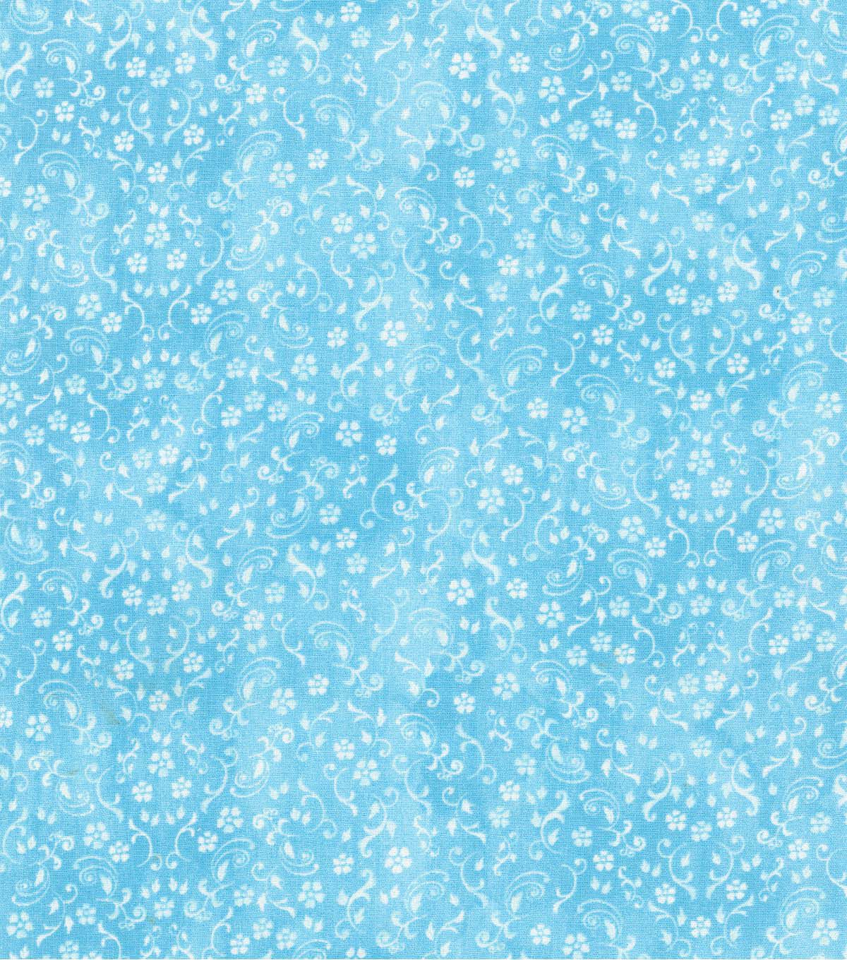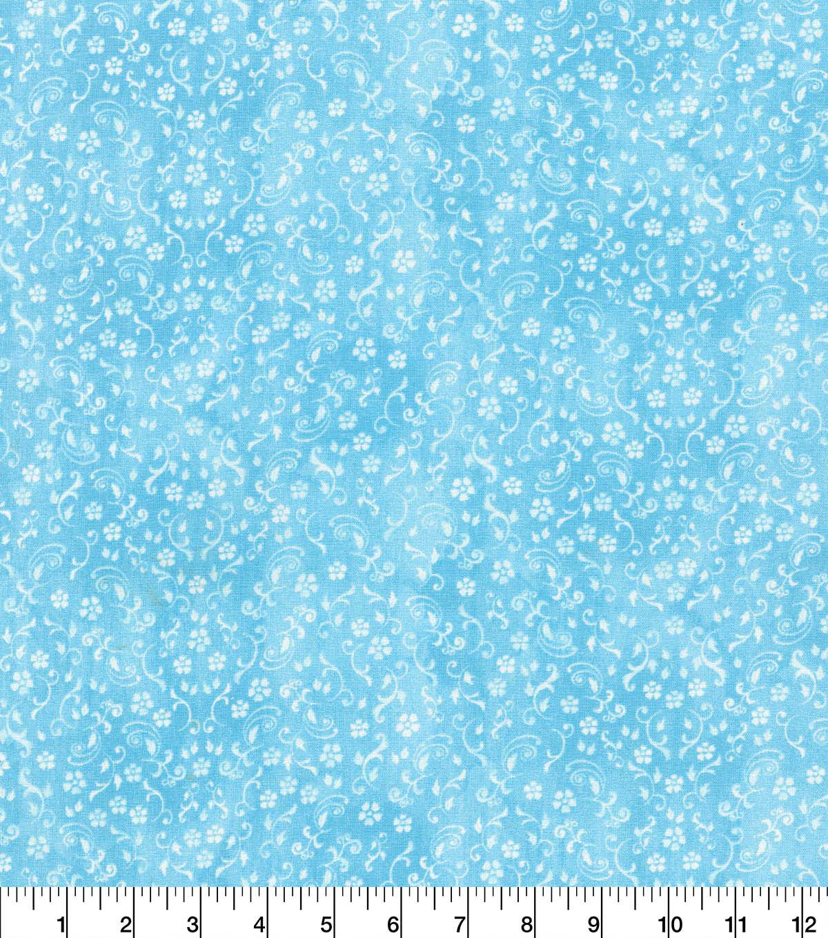 • Robert Kaufman Blue Floral & Scroll Cotton Fabric by Keepsake Calico