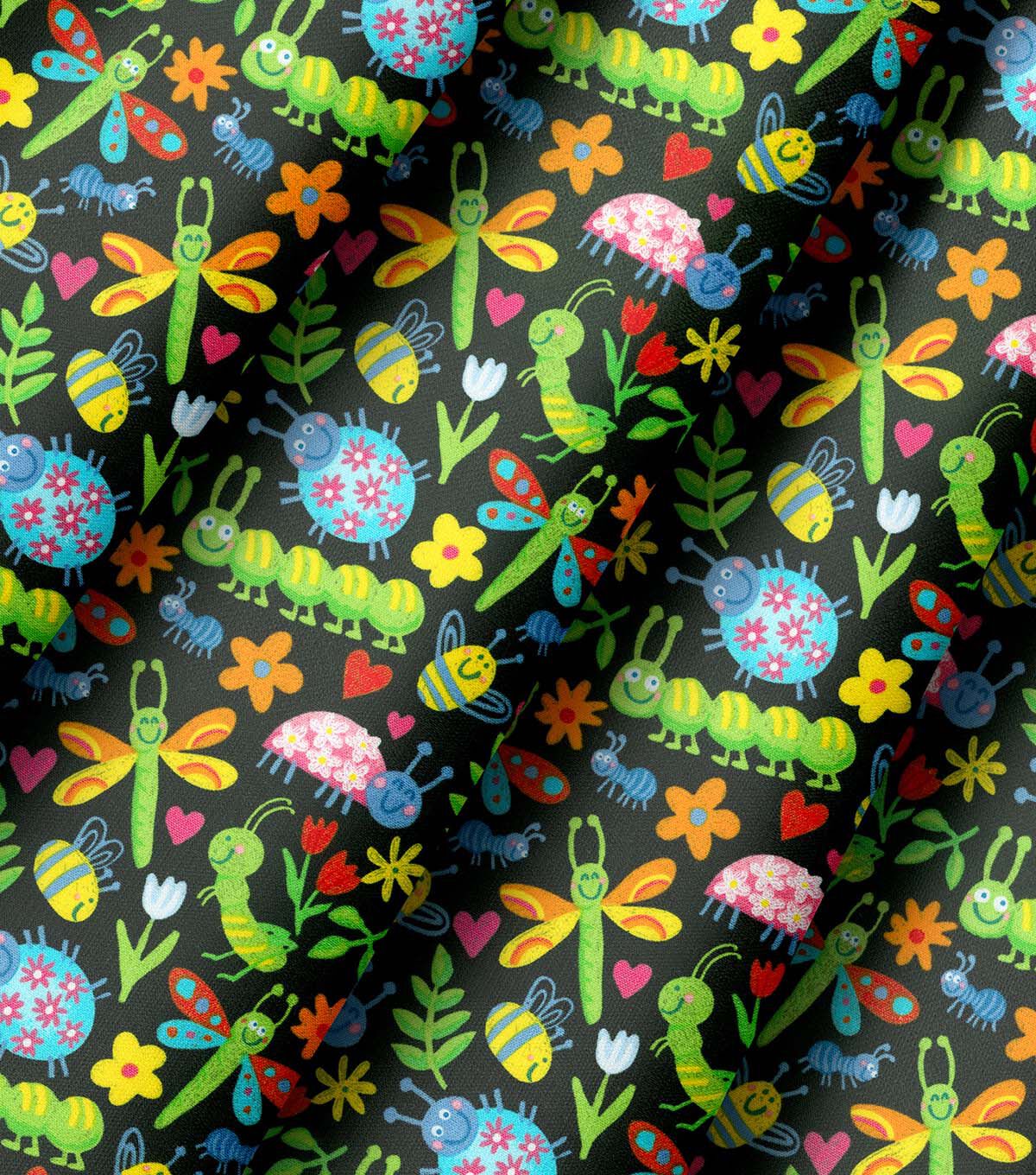 Get Creative with Robert Kaufman Doodlebugs on Black Novelty Cotton Fabric
