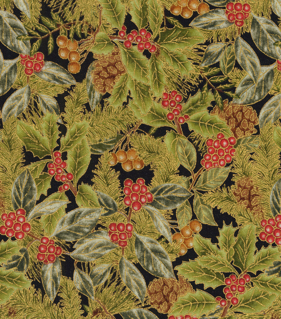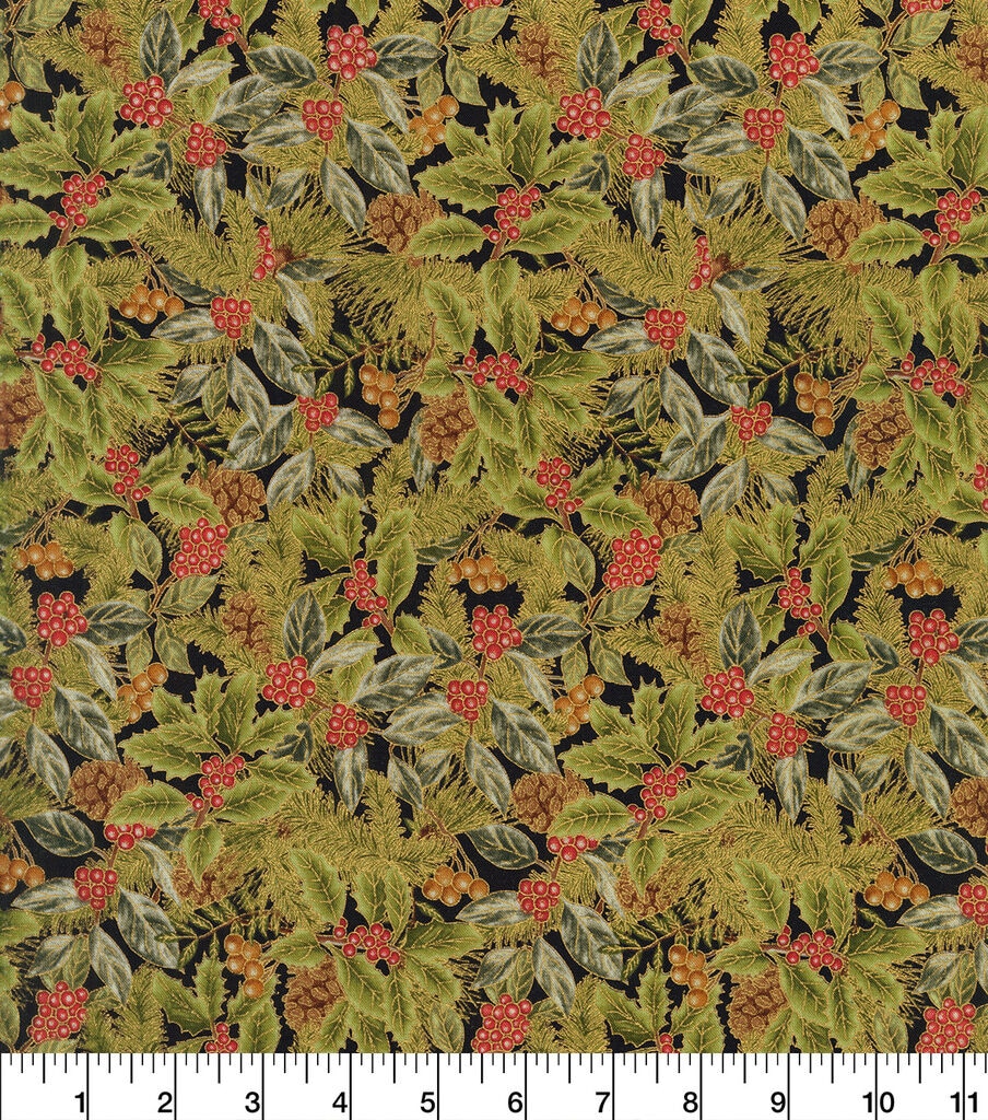 Get into the Holiday Spirit with Robert Kaufman Glitter Pine & Berry Christmas Metallic Cotton Fabric