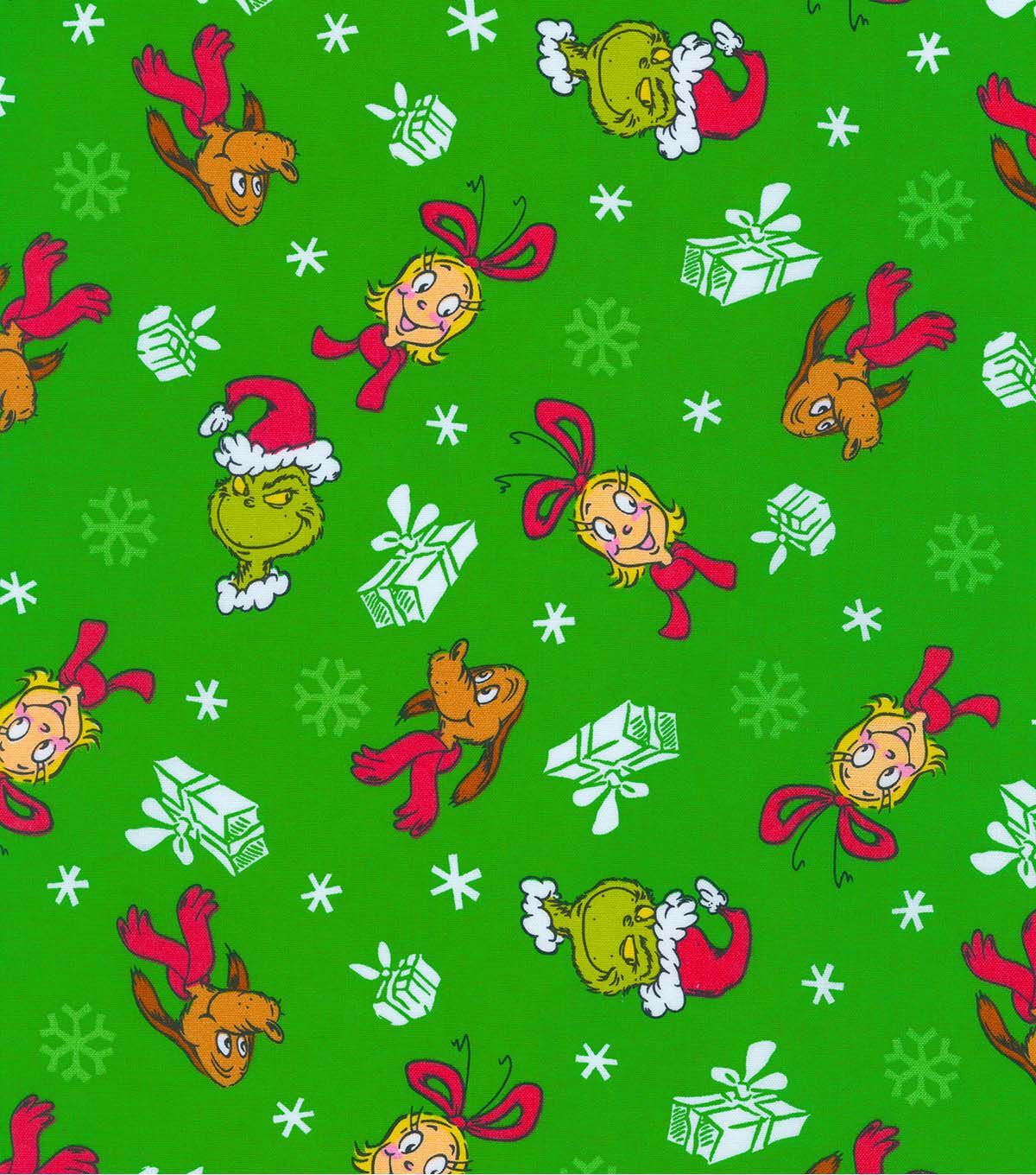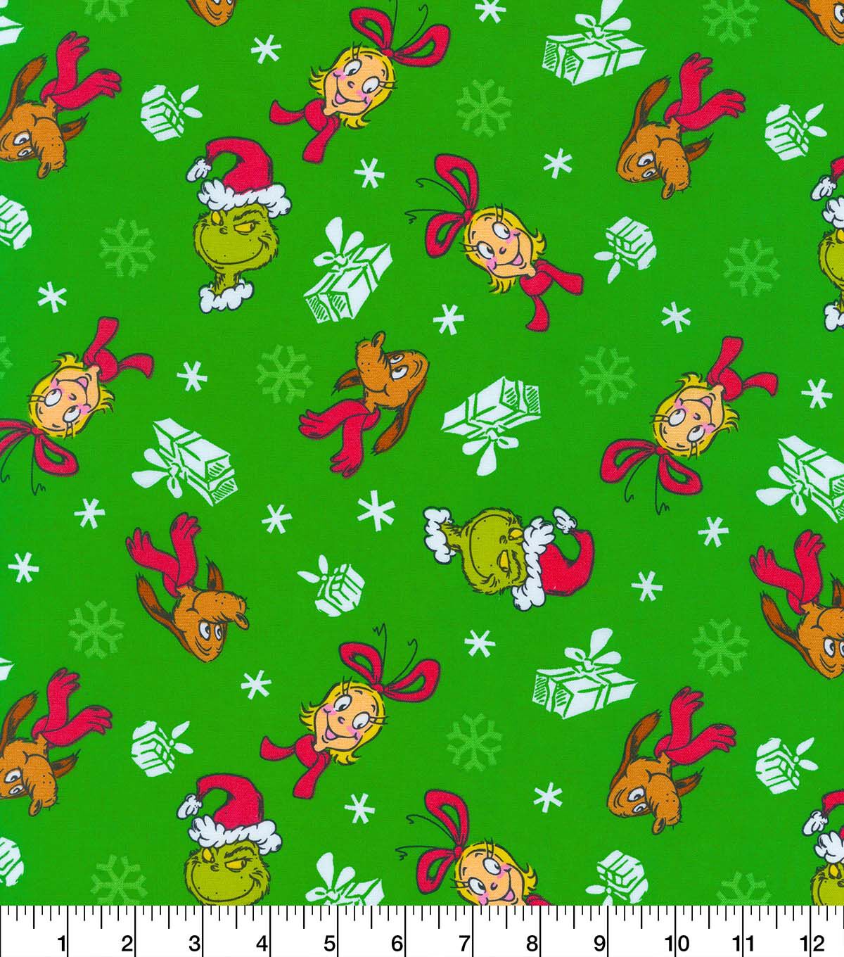 • Robert Kaufman Grinches & Gifts on Green Christmas Cotton Fabric