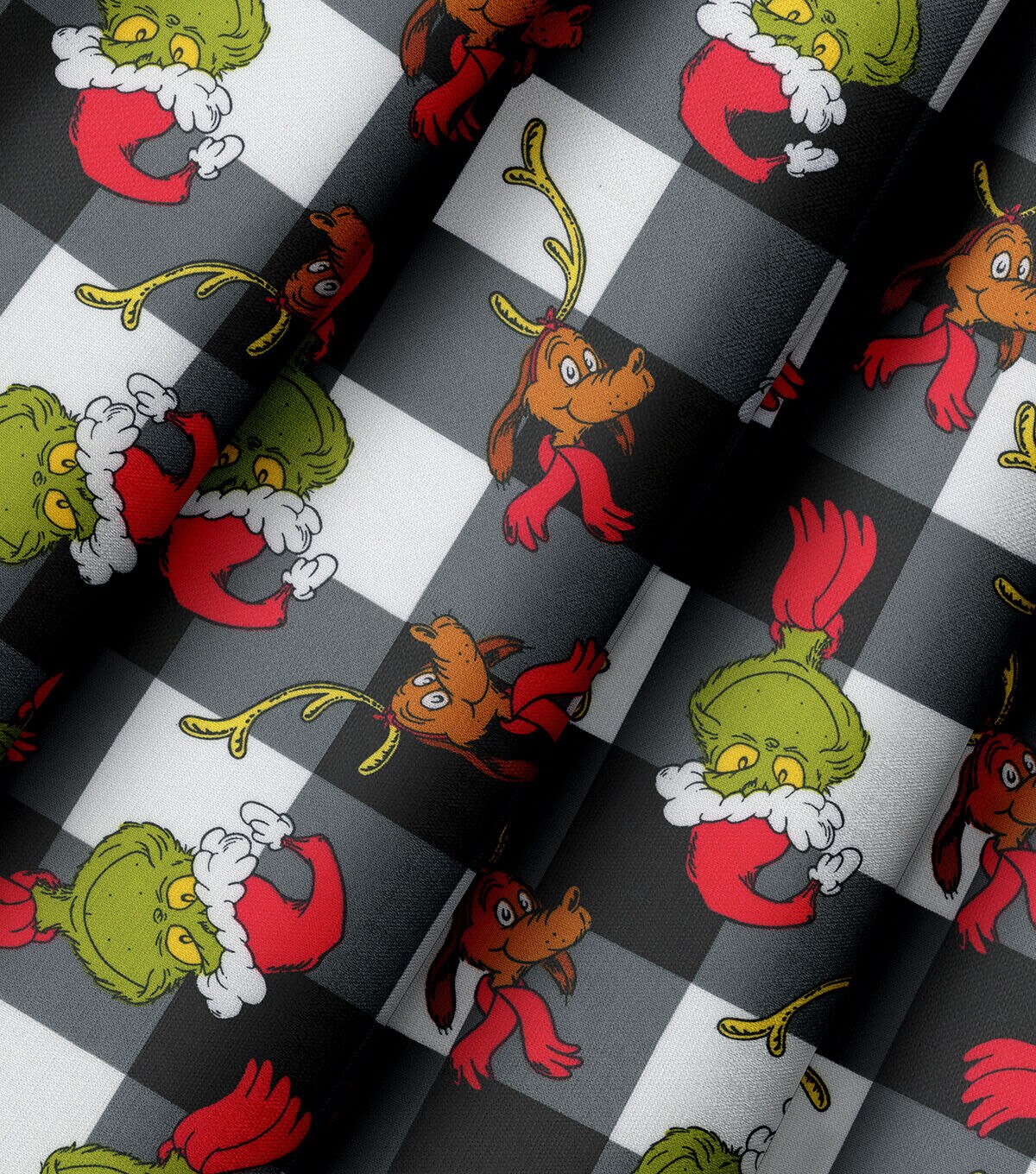 • Robert Kaufman Grinches on Black Buffalo Check Christmas Cotton Fabric