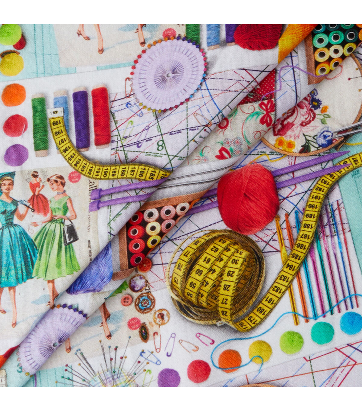 Robert Kaufman Multicolor Craft Table Novelty Cotton Fabric