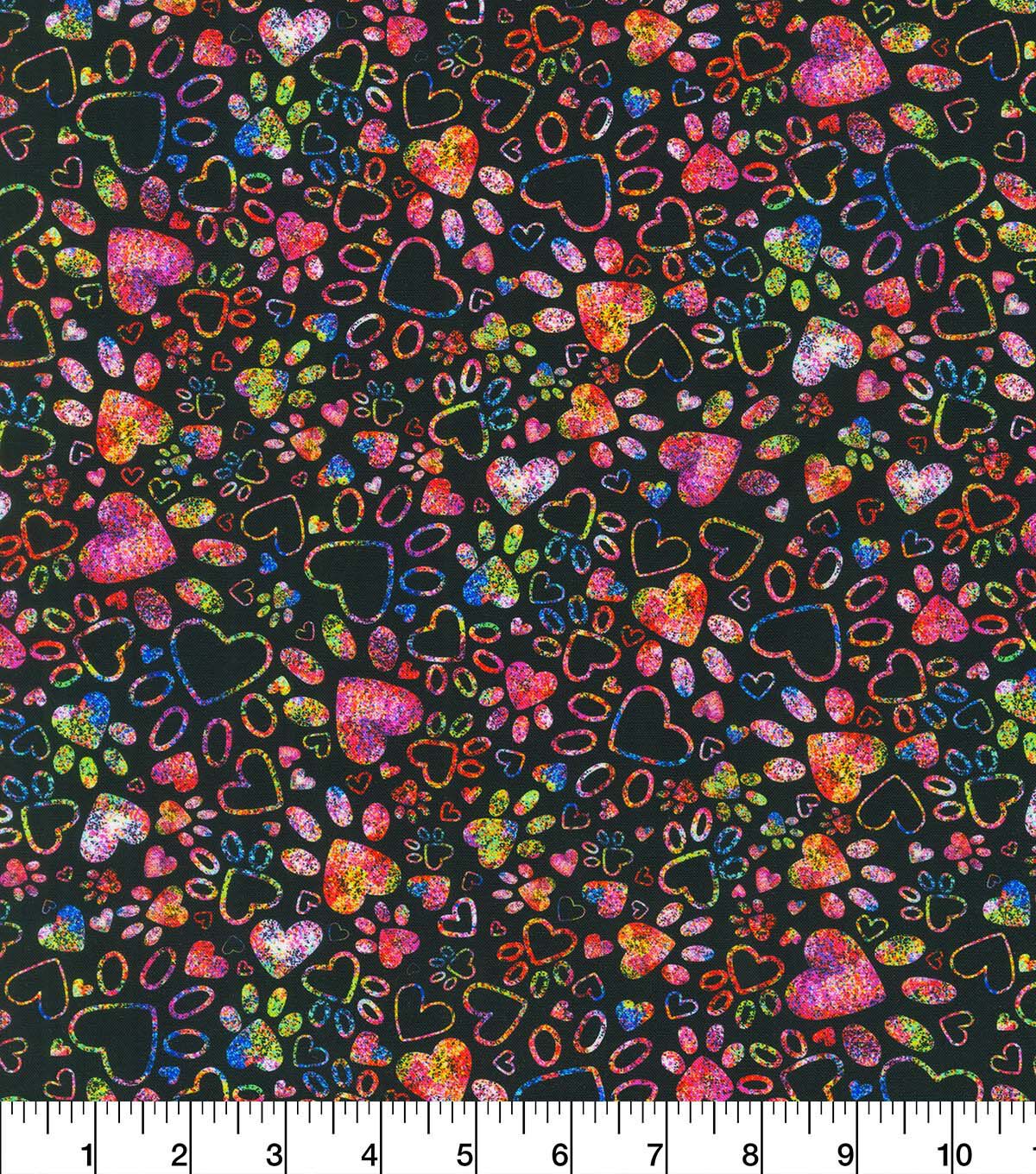 Get with Multicolor Paws of Love Novelty Cotton Fabric