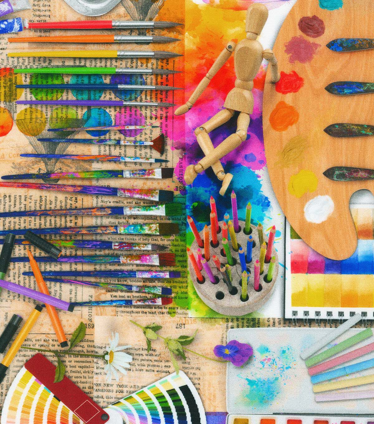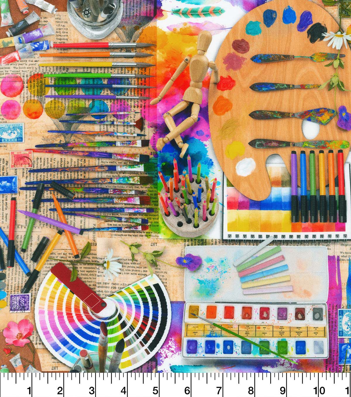• Robert Kaufman Orange The Artists Desk Novelty Cotton Fabric