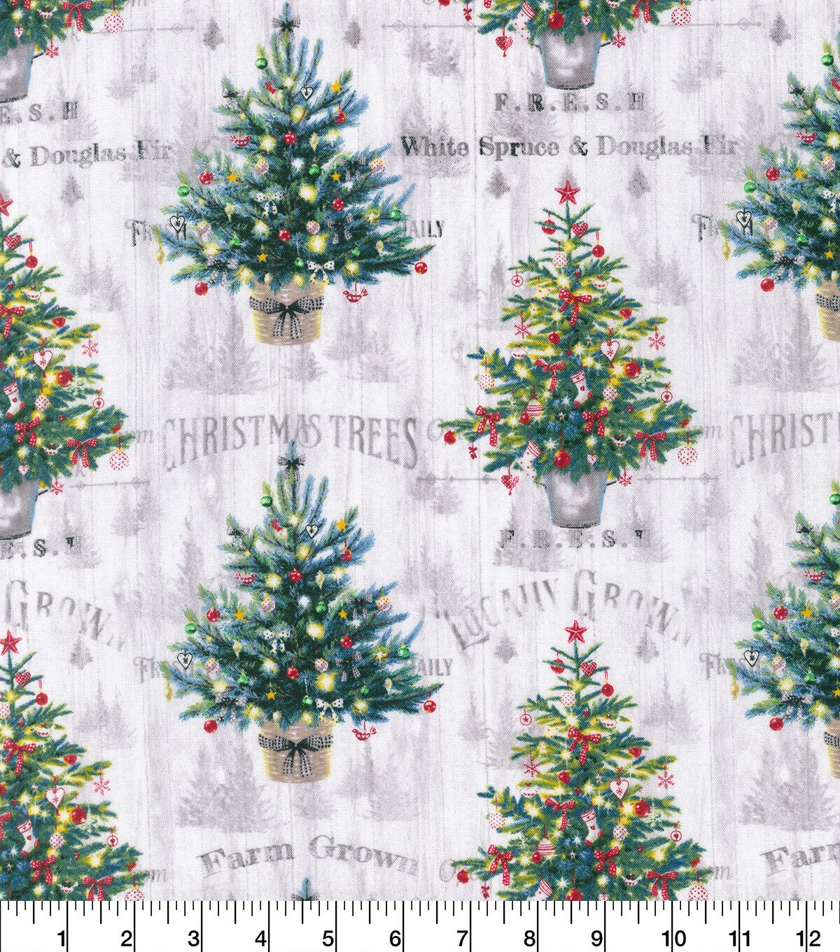 • Robert Kaufman Trees on White Wood Christmas Cotton Fabric