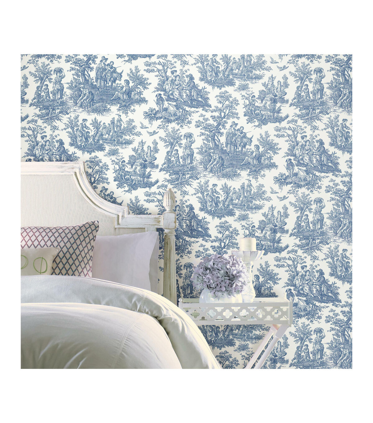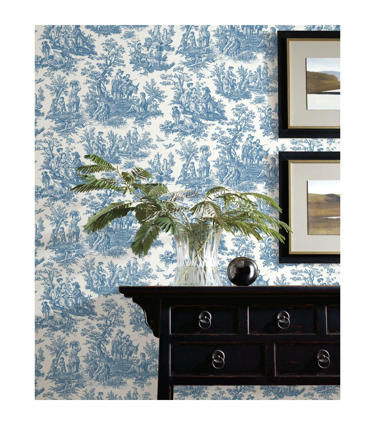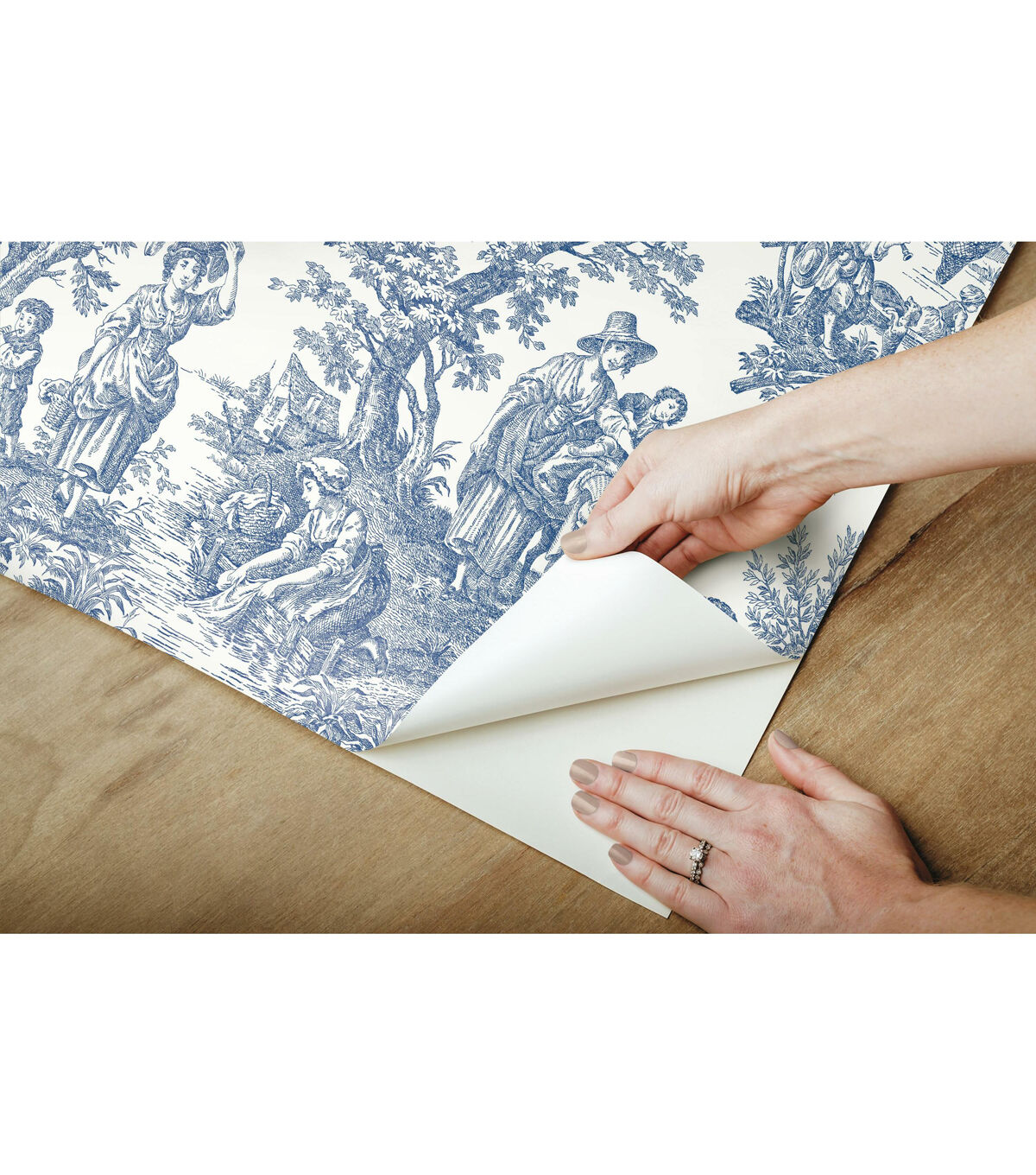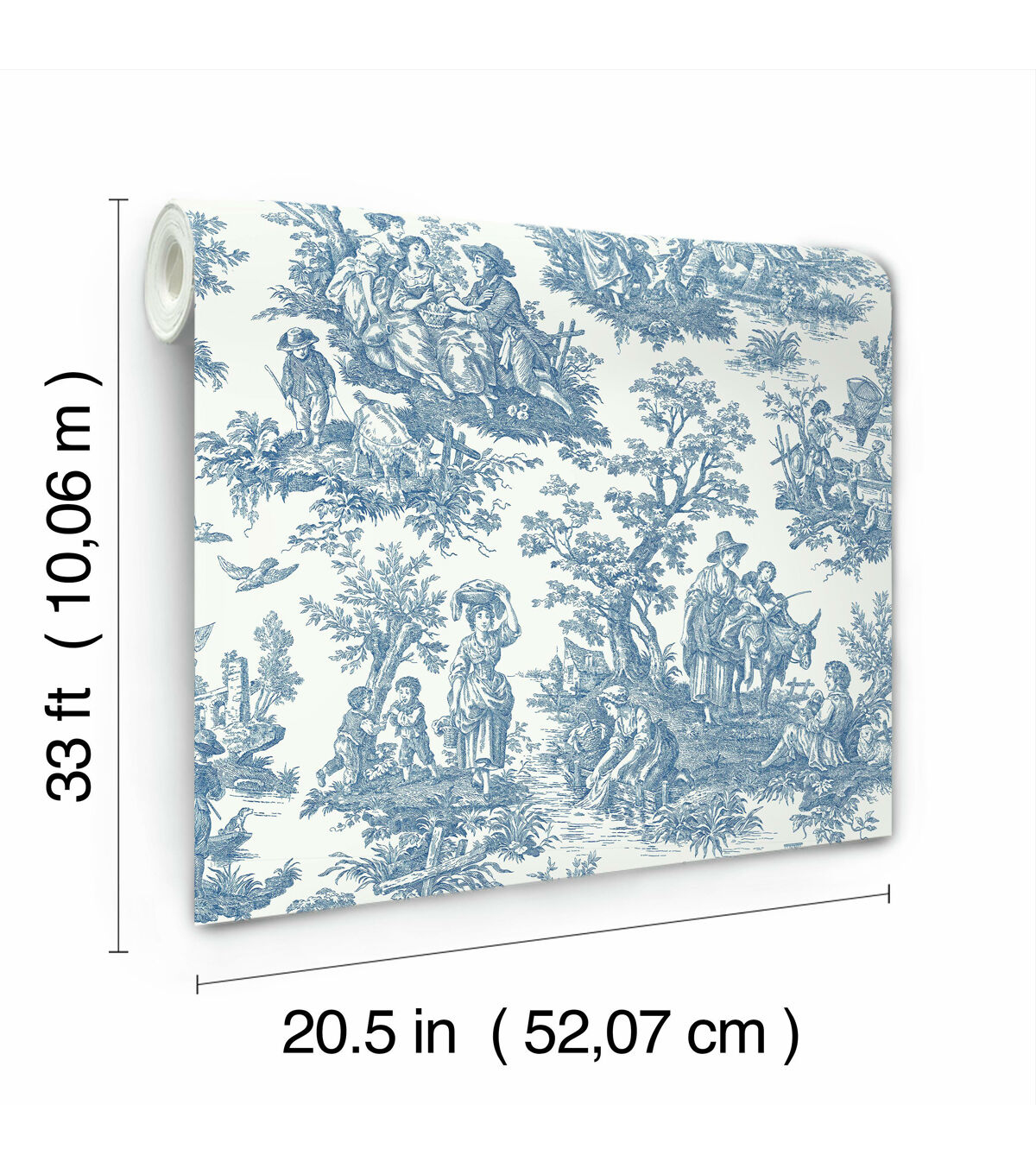 Our Country Life Toile Peel and Stick Wallpaper design from Waverly is just what your walls are looking for. Choose the blue and white wallpaper pattern to add character to a home library, dining room, or sitting room. Installing this wallpaper is simple. Remove the backing, hang, and smooth to get rid of any bubbles or wrinkles. You will love your room’s new look! 20.5 inches x 16.5 feet 20.5 Repeat. Drop Match. 28.18 square feet