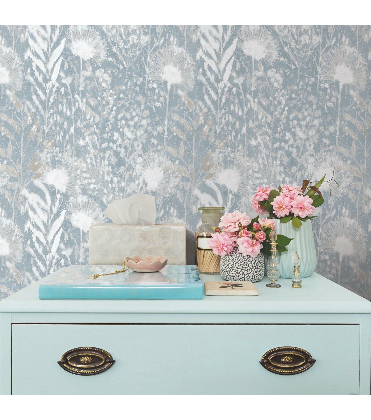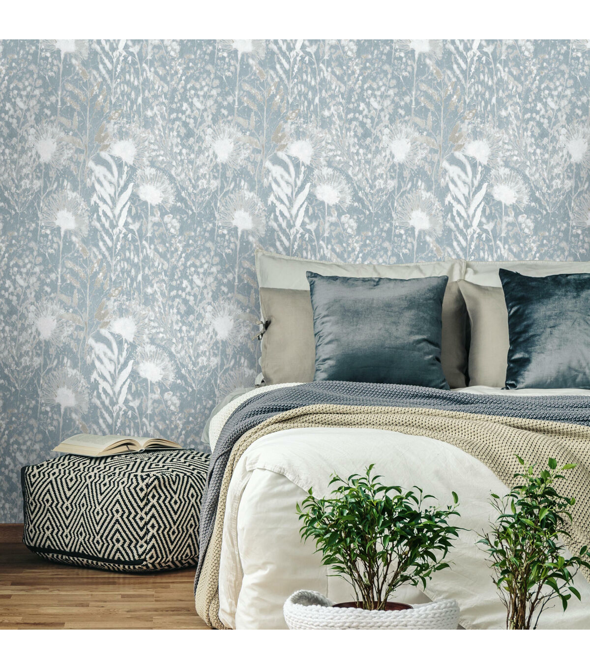Walls become a backyard garden with White Dandelion Peel and Stick Wallpaper by RoomMates. This pattern, inspired by the natural world, gives any surface a dimensional look with little effort. Add organic details to any space for an accent wall, full room makeover, furniture DIY, and more. Simply cut the peel and stick wallpaper to size, remove the backing, and stick to any smooth, clean surface. Pull off the wall in full sheets when it’s time to redecorate: no sticky residue or damage left behind. Bring the natural world into your home with peel and stick wallpaper from RoomMates. 20.5 inches x 16.5 feet 20.5 Repeat. Straight Match. 28.18 square feet