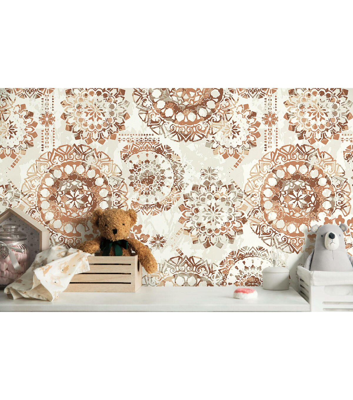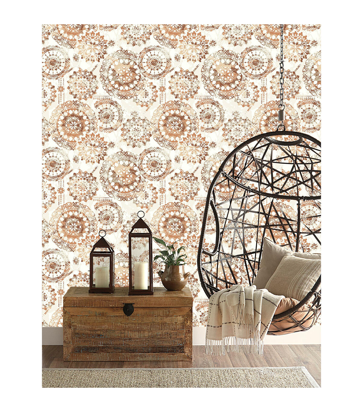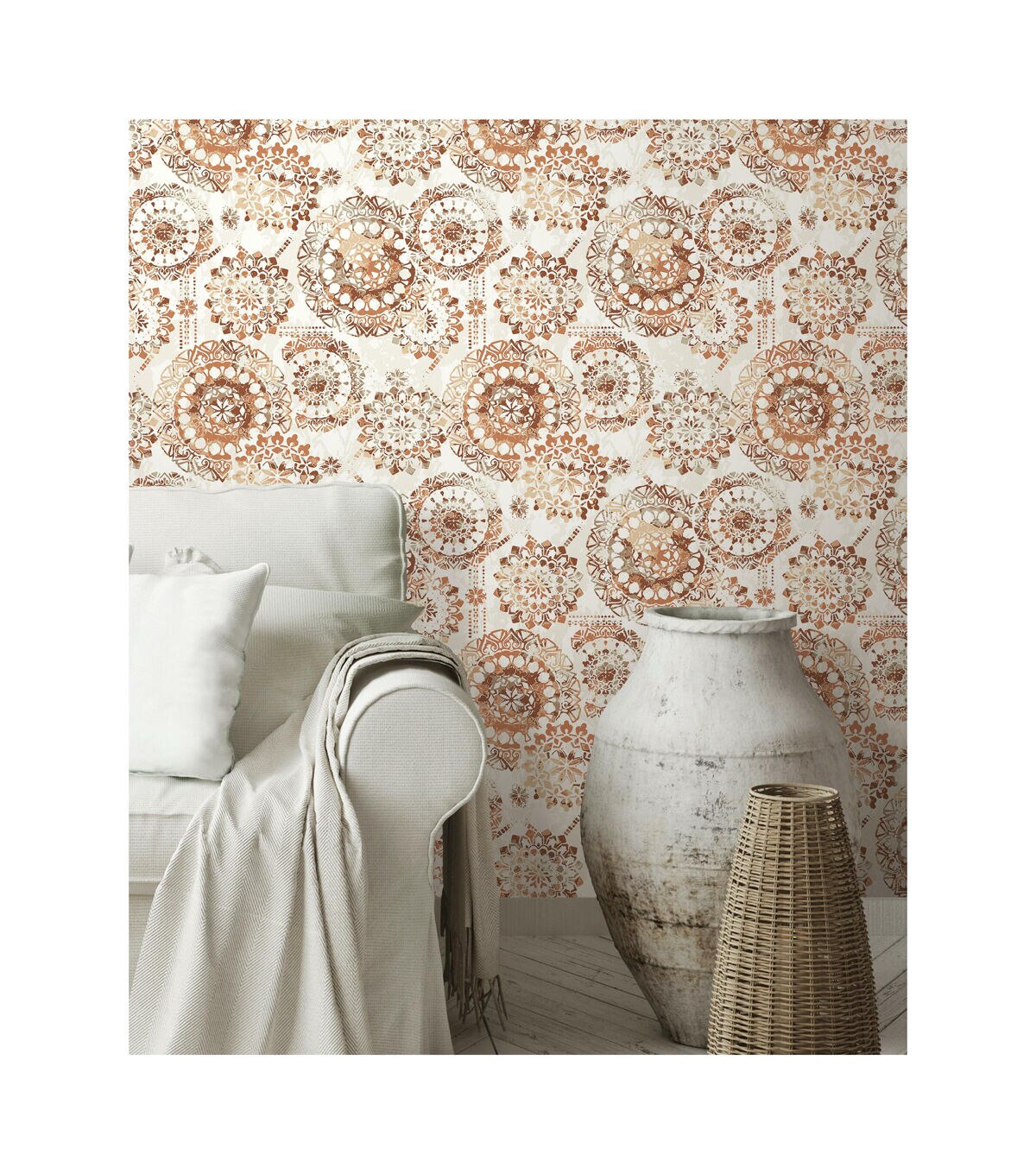Sophisticated and chic, add instant flair to any space or decor with Orange Bohemian Peel and Stick Wall Decor. From walls to DIY crafts, splash this modern bohemian pattern on any clean flat surface in minutes. Install with two easy steps - just peel and stick! Plus, it's removable making it the ultimate temporary decorating solution. Completely safe for walls, Peel and Stick Decor leaves surfaces free of sticky residue. Fast, fun and affordable! 20.5 inches x 16.5 feet 20.5 Repeat. Straight Match. 28.18 square feet