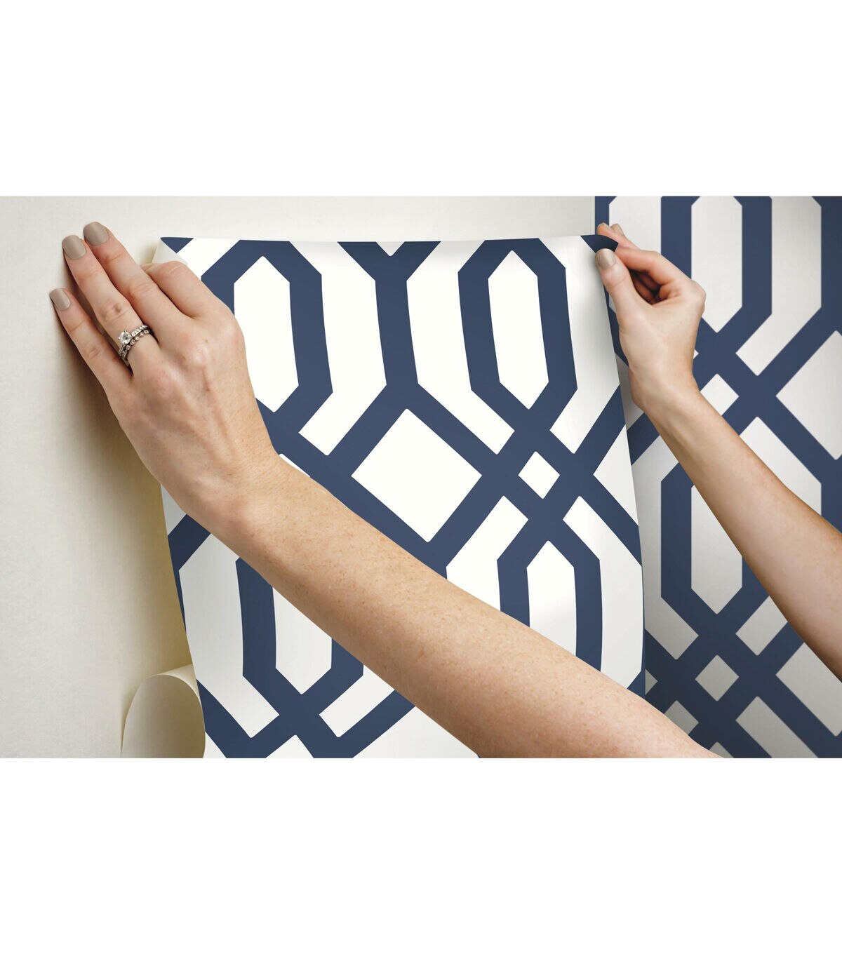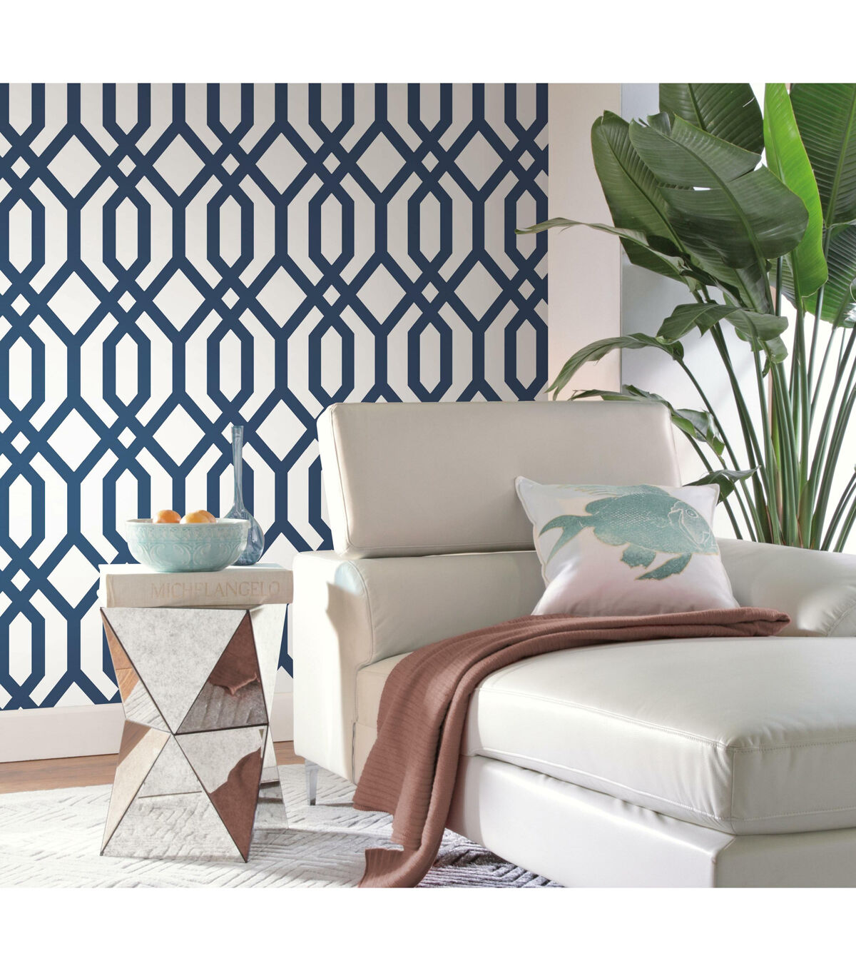 Trellis designs evoke beautiful garden spaces and create a sense of bringing the outdoors in, making the Gazebo Lattice peel and stick wallpaper design from RoomMates a lovely interior wall choice for those who enjoy being in the garden. Formal, yet never stuffy, the lattice design in slate blue on white is an ideal design for any room in the house and may be used successfully with rattan, jute, or warm wood décor of all kinds, creating a fresh feel to the rooms it enhances. Peel and stick wallpapers are an easy and affordable way to decorate; simply peel off the paper backing and smooth onto the wall. When it’s time to redecorate, remove in full strips with no remaining sticky residue or damage to walls. 20.5 inches x 16.5 feet 24 Repeat. Straight Match. 28.18 square feet