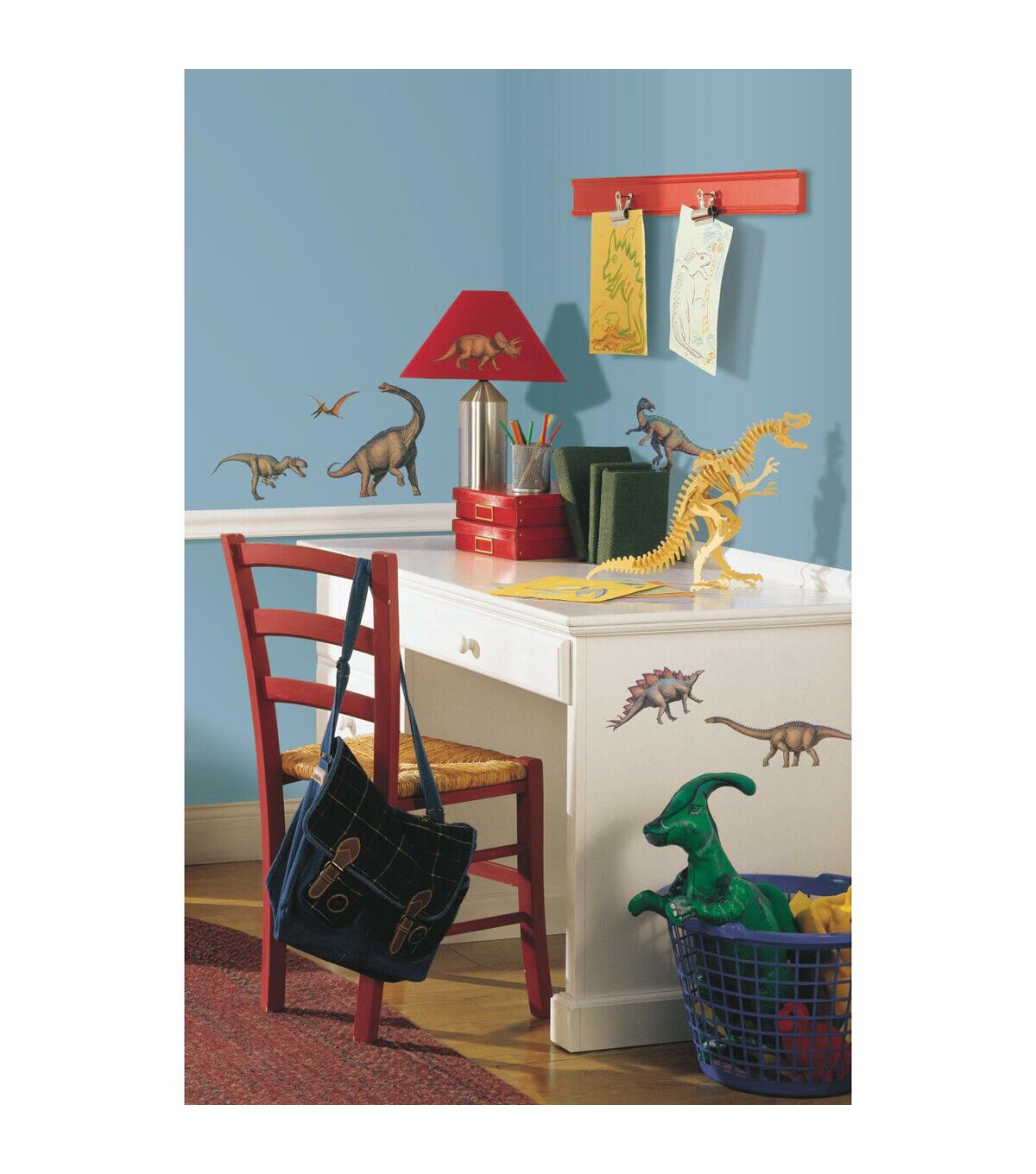 Our repositionable wall decals are the easiest way to put the finishing touch on your child's dinosaur bedroom theme. To use, just peel each pre-cut element off the sheet and stick it on the wall (or any other flat surface you prefer). When you're ready for a change, simply peel them off and stick them somewhere else. A great match to the rest of our dinosaur room decor!