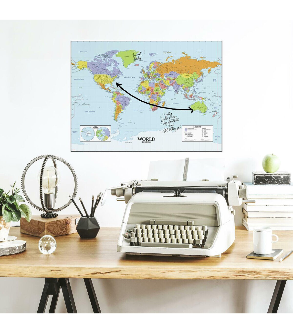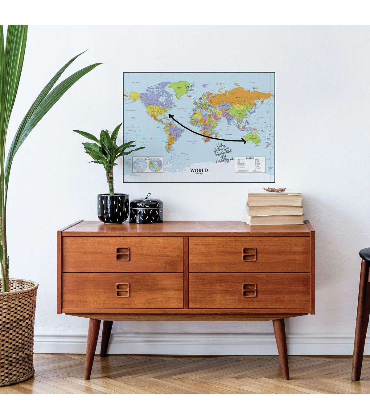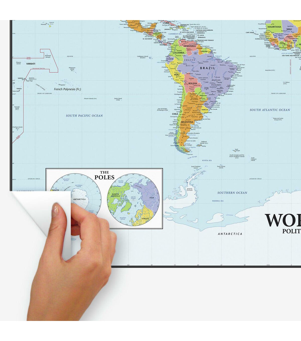 Update a space with RoomMates Dry Erase Map of the World Peel and Stick Wall Decals. Simply peel and stick to any smooth, flat surface for instant results. Remove, reposition and reuse as often as needed. No sticky residue is left behind. Walls stay clean every time. Add personality to your walls today with RoomMates Wall Decals!