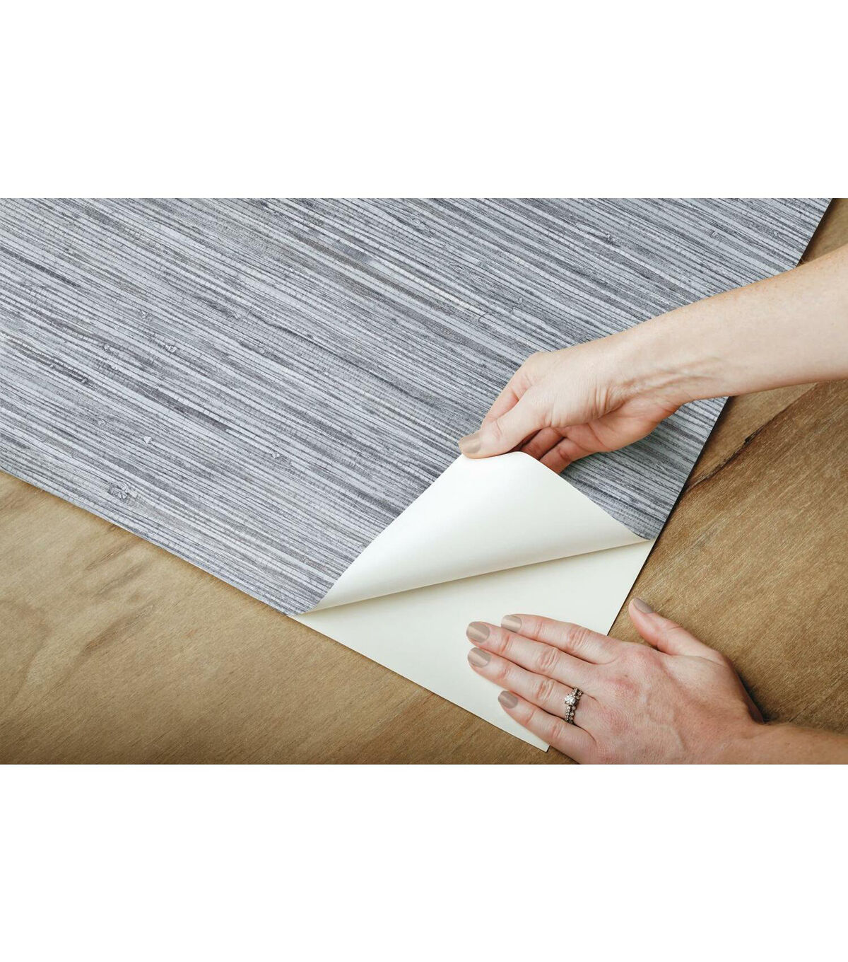 Getting the natural texture of grasscloth has never been easier or more affordable with RoomMates Decor revolutionary Peel and Stick Wallpaper! Designed with calming hues and printed to look textured even though there is none, transform any smooth flat surface or object in no time at all.
