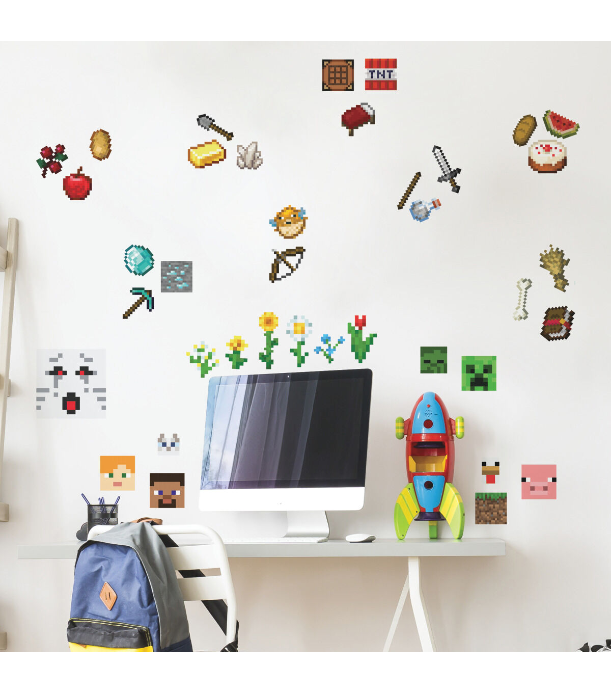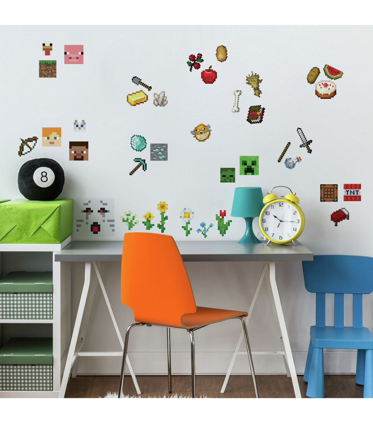 Add educational pizzazz to your walls with the critically acclaimed, officially licensed, Minecraft video game imagery peel and stick decals from RoomMates. Minecraft’s infinite terrain, raw materials, earthworks and more, bring color and style to walls for fans of all ages. RoomMates wall decals are an easy and affordable way to decorate in minutes. Reposition or remove them effortlessly with no remaining sticky residue or damage to walls.