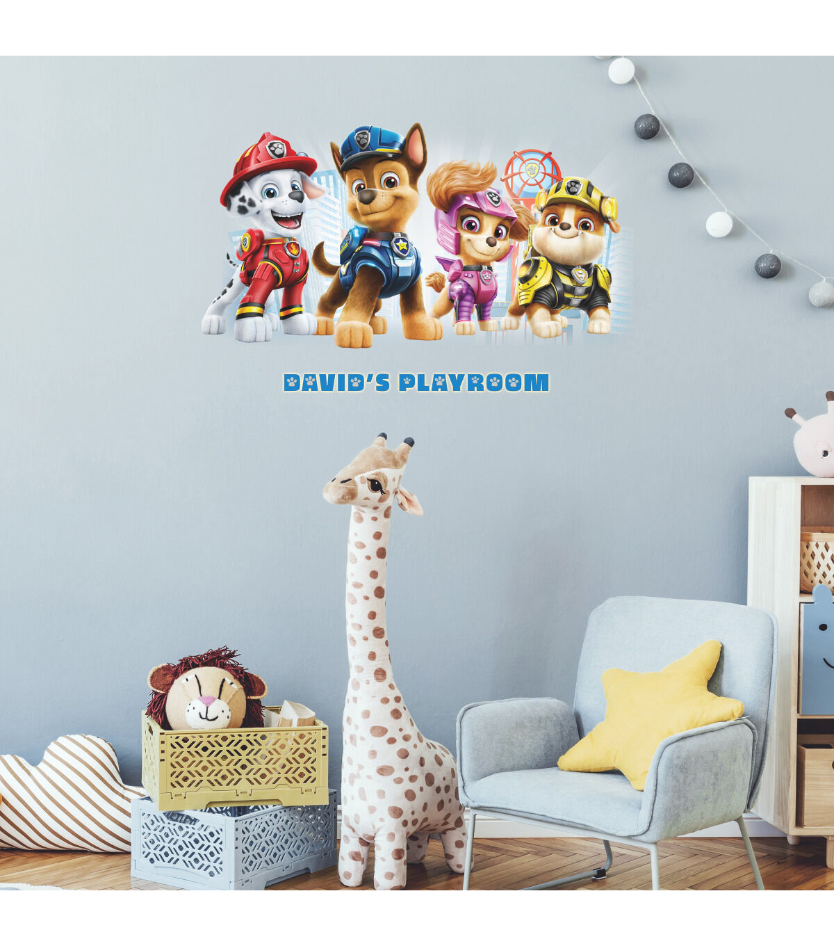 Gear up for an epic, mighty rescue mission in this Paw Patrol Peel and Stick Giant Wall Decal with Alphabet from RoomMates. Transform your child’s room with this fun and personalized design officially licensed by Nickelodeon that comes with a complete alphabet set allowing for personalization. RoomMates wall decals are always removable and repositionable with no damage to the wall and no sticky residue.