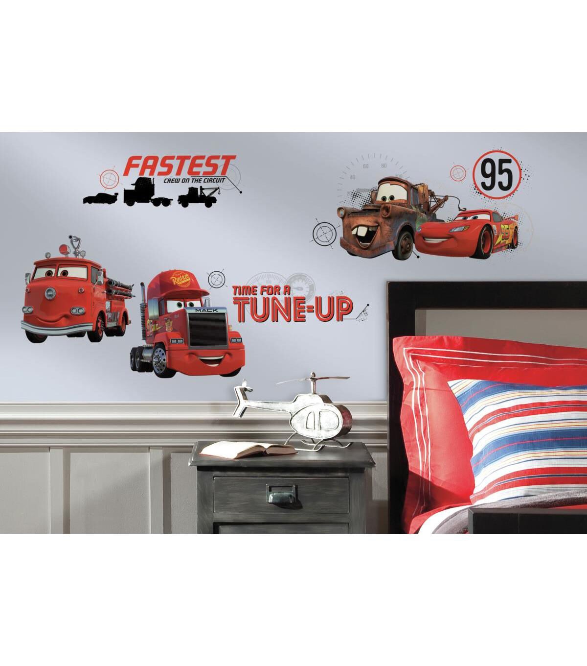 Give your walls a tune up with these Disney Cars Friends to the Finish wall decals. These removable and repositionable wall decals are great for fans of all ages. To apply, slowly peel each pre-cut wall decal from the backing and stick to any smooth surface.