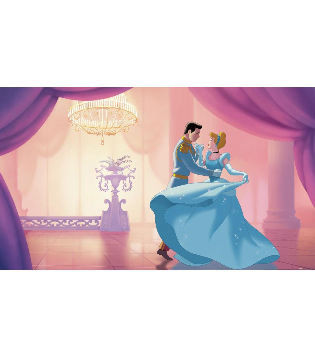 Dance the night away with our Cinderella 'So This Is Love' XL Wallpaper Mural by RoomMates. The perfect way to bring Disney to a room for an affordable price, add this wallpaper mural featuring Cinderella and her Prince Charming to any smooth, flat surface. Plus, the application process is simple. Just activate each of the seven panels with water and stick them side-by-side on the surface. That's it.