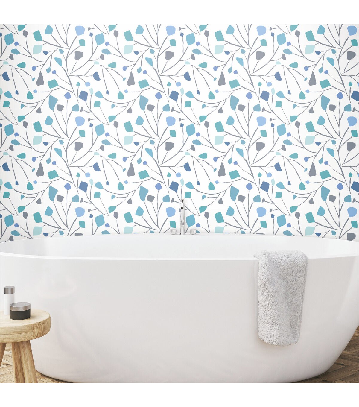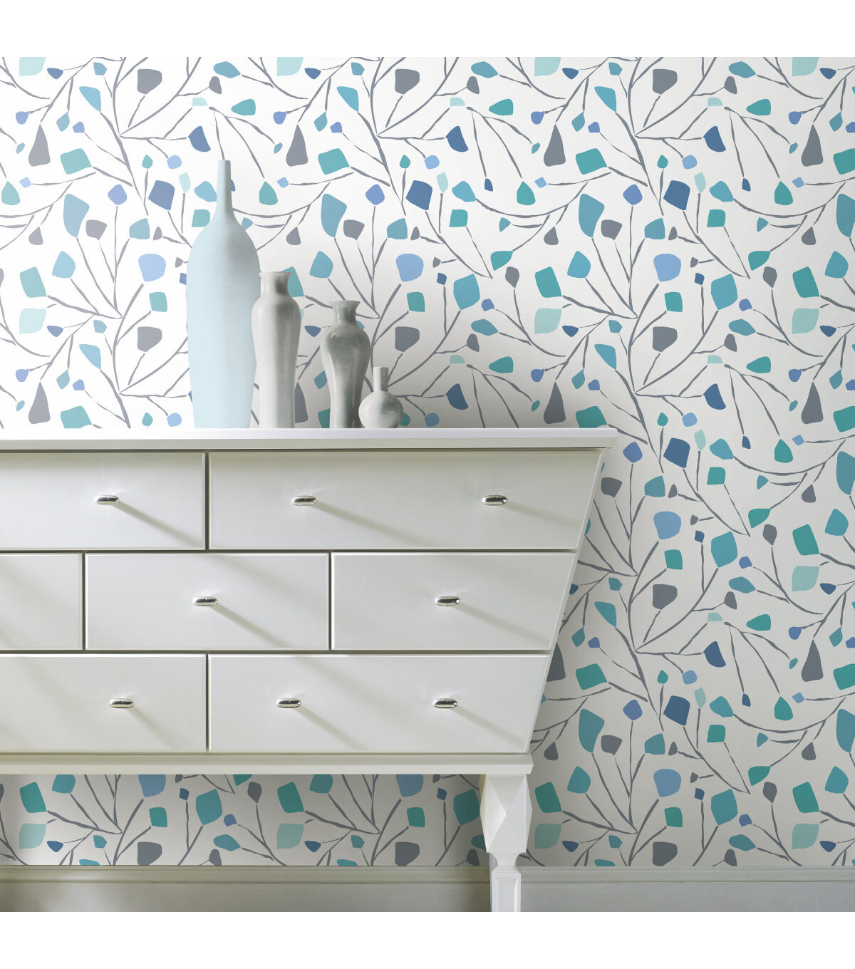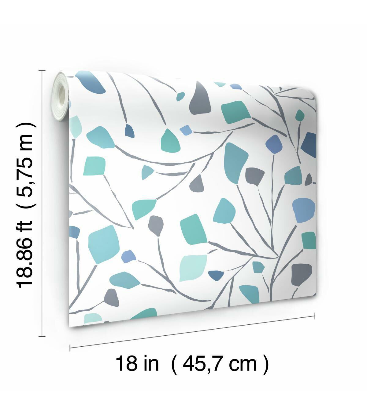 Comes with 1 Roll. 18 inches wide x 18.86 feet 18 inch Repeat. Straight Match. Covers 28.29 square feet.Flirty and fun, these slender twigs and buds are tossed in carefree style in Sprigs peel and stick wallpaper by Jane Dixon for RoomMates. Make a contemporary statement in any room in the home with this pleasing mid-scale design that combines the soft neutral of gray with soft dashes of turquoise and blue. Peel and stick wallpapers are an easy and affordable way to decorate; simply peel off the paper backing and smooth onto the wall. When it’s time to redecorate, remove in full strips with no remaining sticky residue or damage to walls. Jane Dixon is a self-taught artist, originally exhibiting watercolor paintings through galleries. She draws her inspiration from the myriad of organic shapes and bold colors found in the natural world. Creating sophisticated, whimsical designs, Jane's collection ranges from botanicals to abstract with beautiful novelty motifs. Originally from Austin, Texas, Jane now lives in the Chicago area with her patient husband and bossy dog.