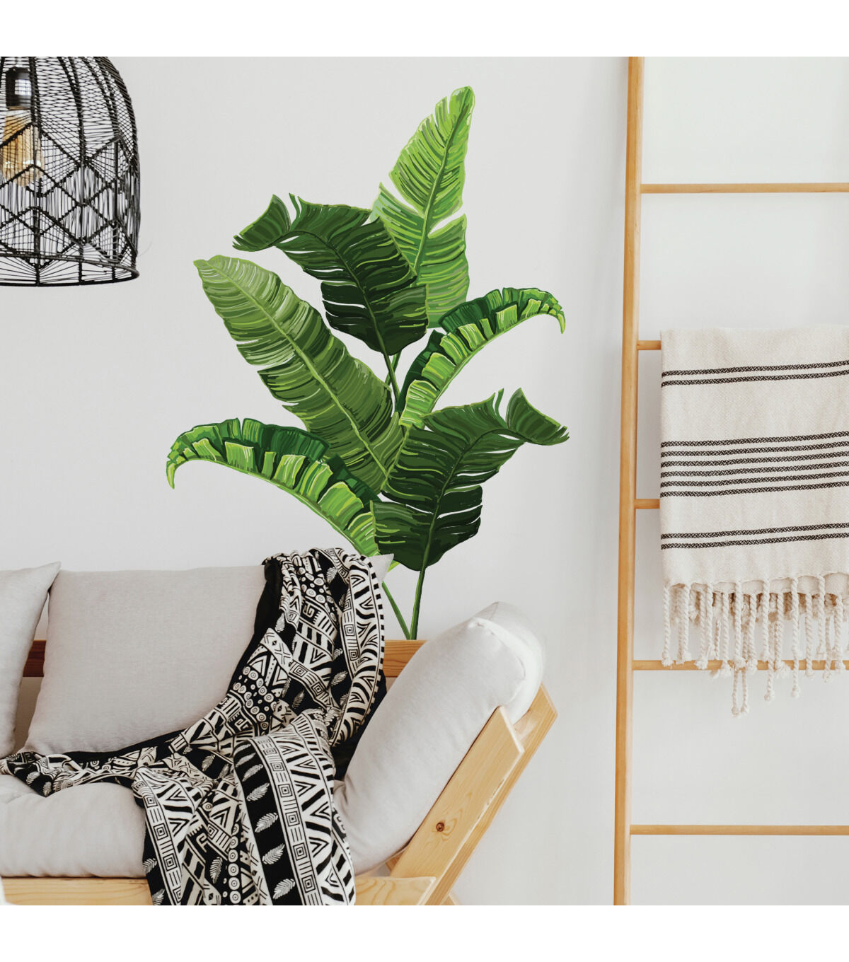 Decorate walls with Banana Leaf Peel and Stick Giant Wall Decals by RoomMates. Complete with 12 decals, this wall sticker set is a fun and creative way to transform any room in seconds. To apply, simply peel and stick decals to any smooth, flat surface. Remove, reposition and reuse as often as needed. Created with high quality vinyl that's made to last, walls stay completely safe, and sticky residue is never left behind. It's fast, fun and affordable wall decor at it's best.