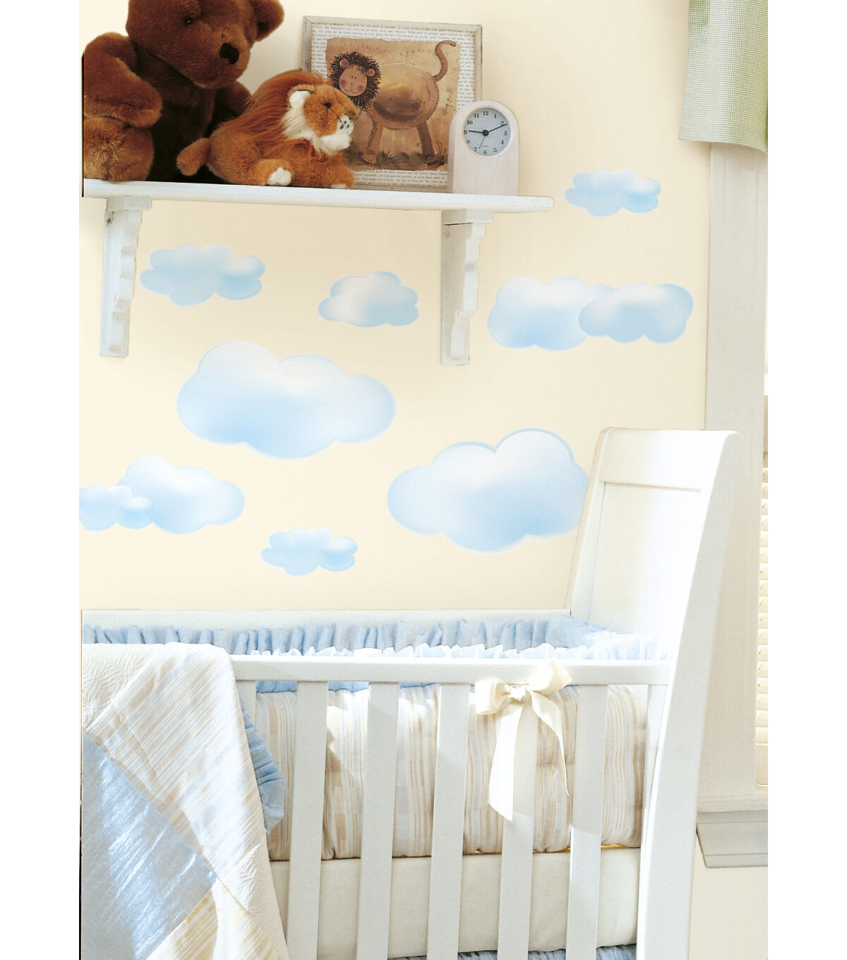 The sky's the limit when it comes to decorating options, thanks to this set of gorgeously rendered clouds. Clouds have become a staple of today's room decor. They look always great in kids rooms or nurseries... but think of the decorating possibilities in a bathroom, kitchen, or bedroom. Clouds look great on the walls, but why not place them on a light blue ceiling to create a genuine trompe l'oeil sky effect? It's like living outside!