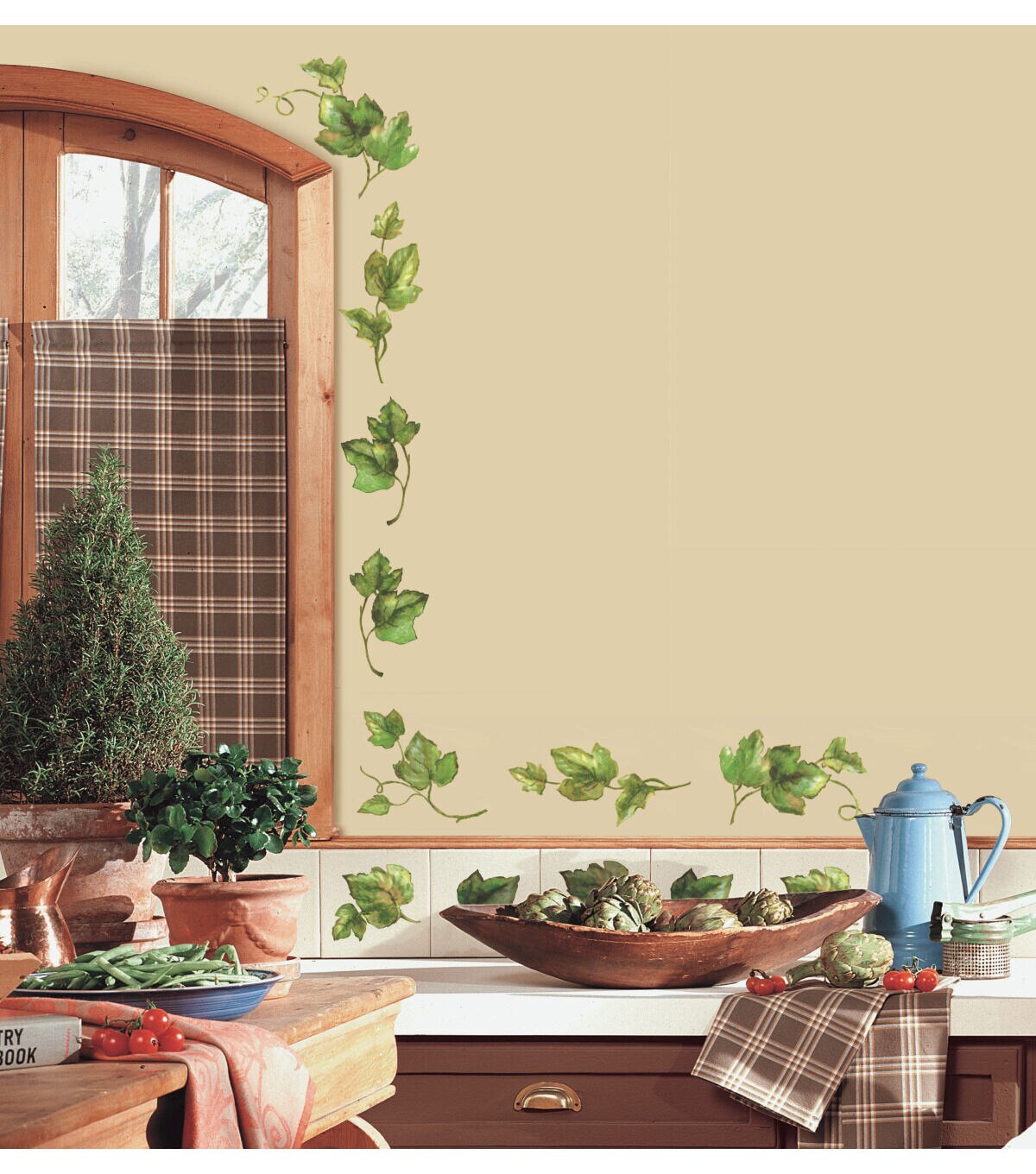 Bring the outside in with this set of painterly ivy wall decals. Each element is precut for easy application, and can be applied to any smooth, flat surface... including tiles and appliances. Spruce up your kitchen walls or accent your windows, and when you're ready for a change, just take them down and start all over again in a new room!