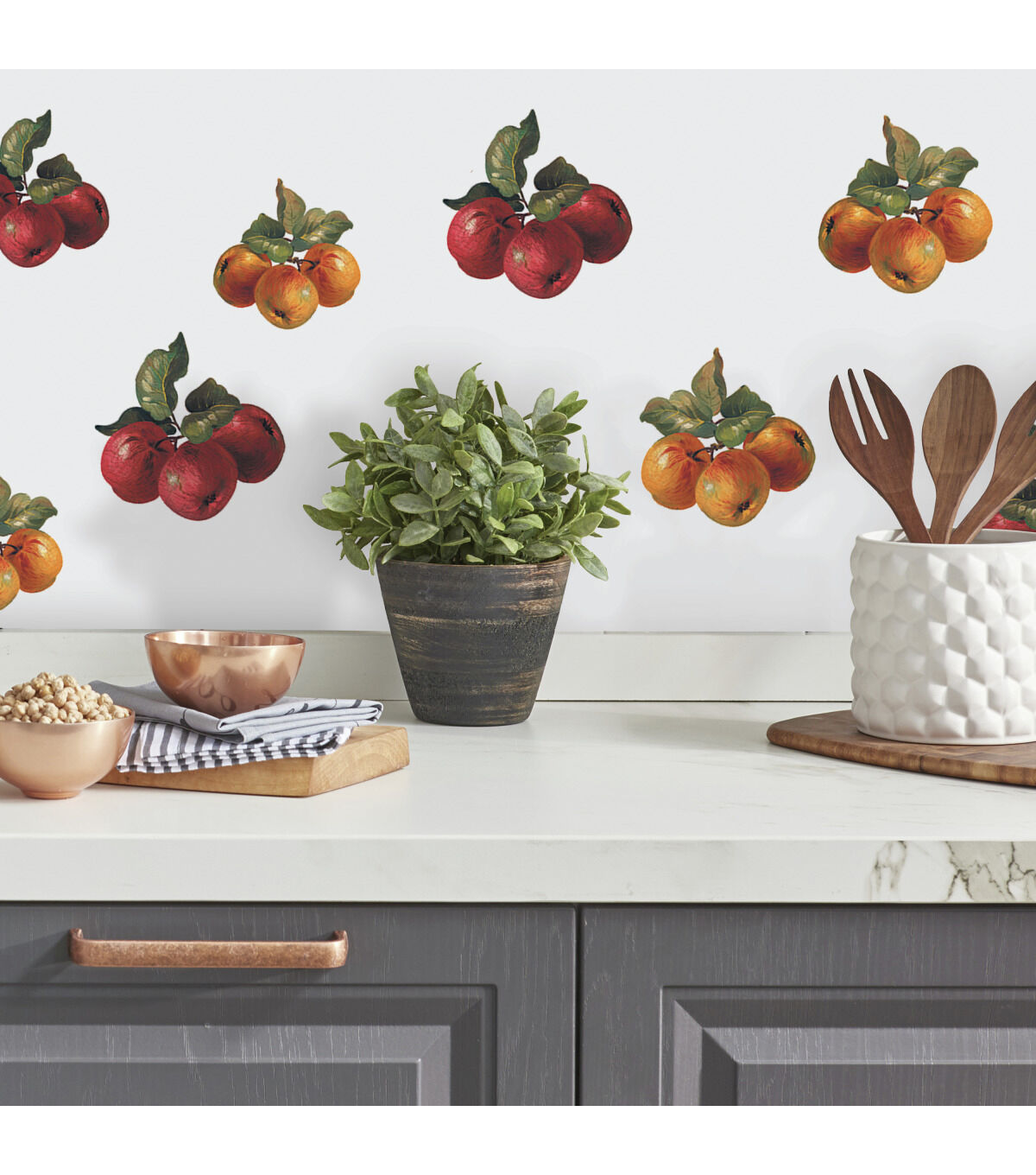 What a bountiful harvest of fruit and colors! These masterfully rendered apples and grapes will undoubtedly add a touch of sophisticated fun to any room. Great for kitchens, but will apply with ease to any wall or smooth, flat surface. And because RoomMates remove without leaving behind a sticky residue, they can be transferred to a new room at any time.
