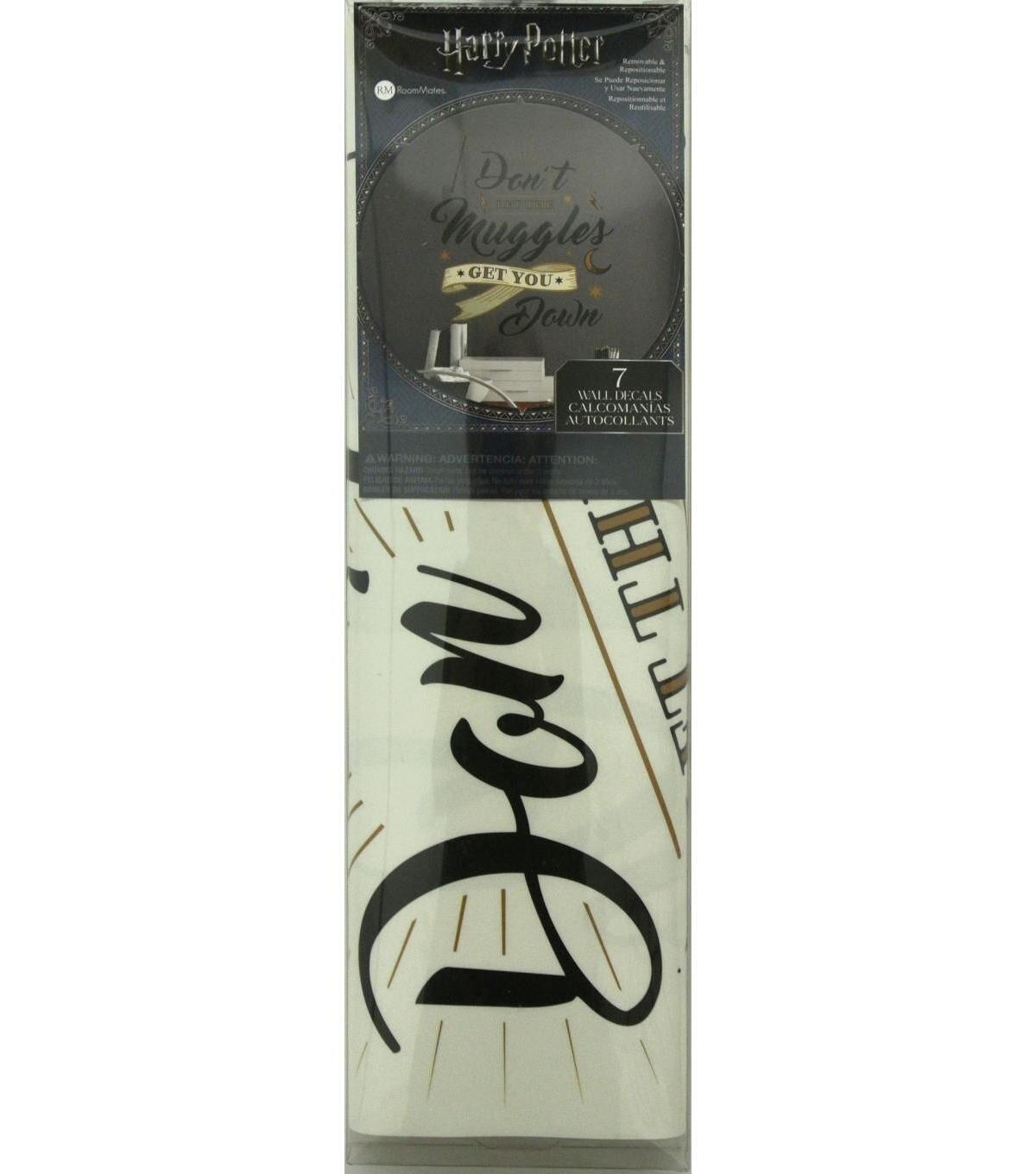 Update a space with RoomMates Harry Potter Muggles Quote Peel and Stick Giant Wall Decals. Simply peel and stick to any smooth, flat surface for instant results. Remove, reposition and reuse as often as needed. No sticky residue is left behind. Walls stay clean every time. ??Add personality to your walls today with RoomMates Wall Decals!