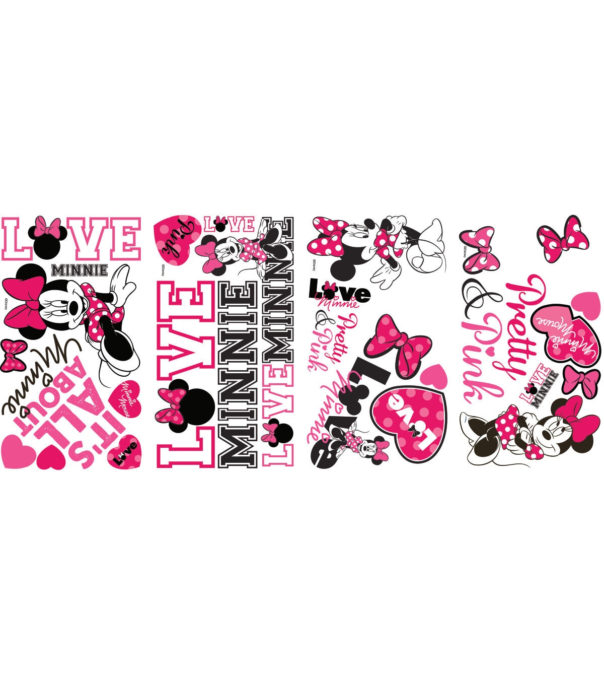 If your little girl loves Minnie Mouse, she's sure to adore these wall stickers! Our pretty & pink Minnie Mouse wall decals are easy to apply to any smooth surface. They are fully removable and repositionable, and can be peeled off the wall and re-applied over and over. Each set includes multiple hearts, phrases, and images of Minnie Mouse in various fashionable poses. They're a great gift idea for any girl who loves Minnie!