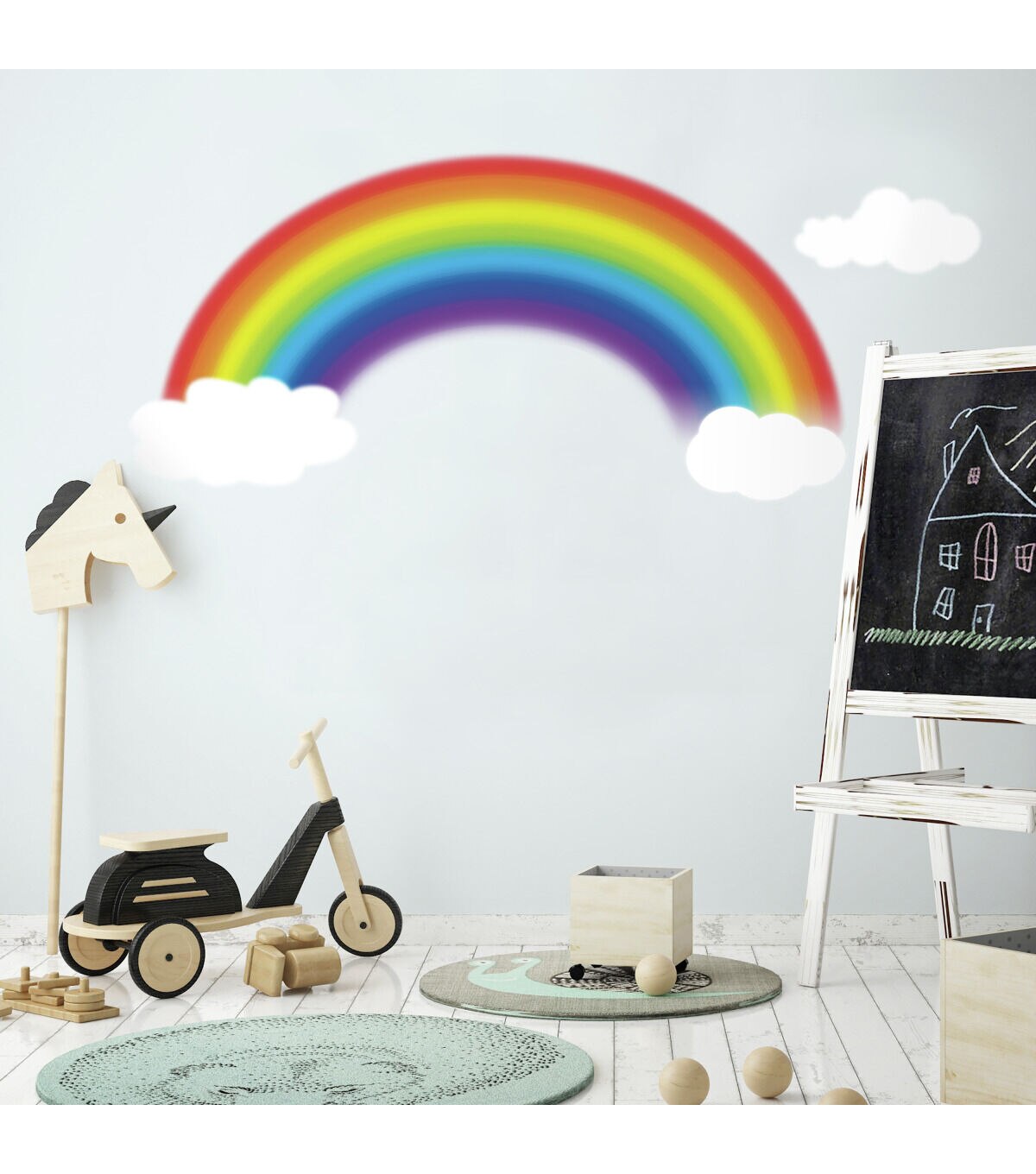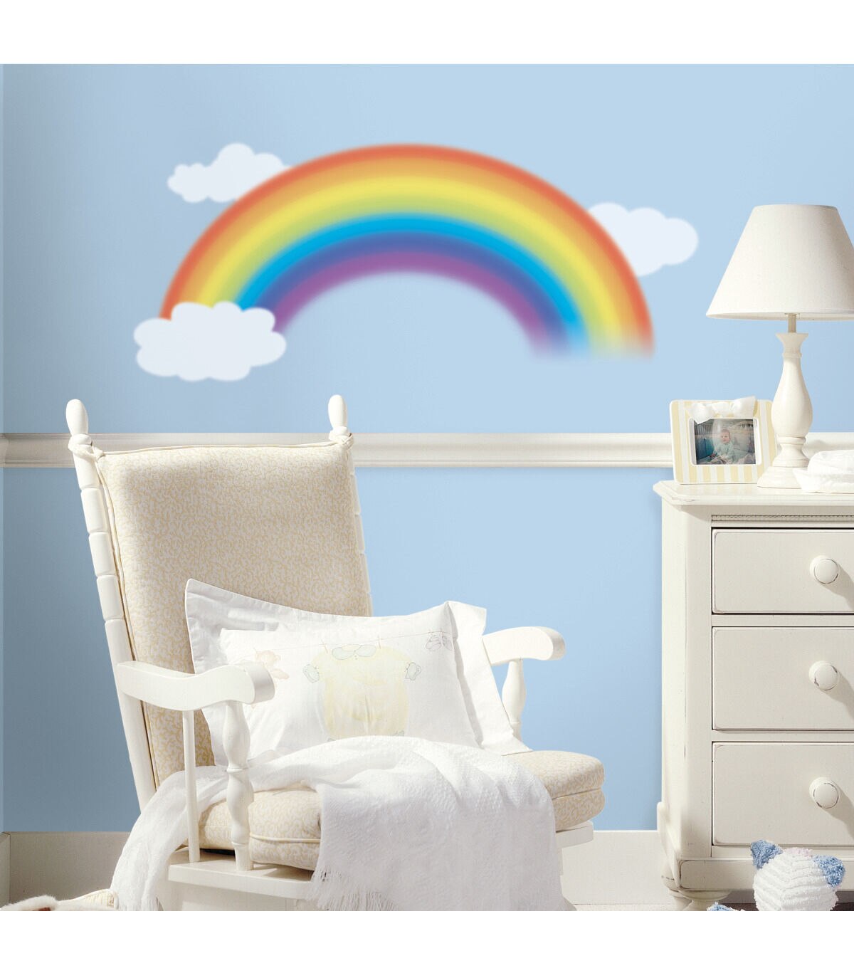 This beautiful painterly rainbow will look right at home on the wall of any nursery or bedroom. Like all RoomMates, applying this giant wall decal is a breeze: simply peel each pre-cut section from the liner and assembled it on the wall. The design is removable and repositionable, and will never damage your walls. A wonderful pick for nurseries or your little girl's bedroom, the only thing this design is missing is the pot of gold at the end of the rainbow! Pair with our white or blue clouds to create a full sky effect in any room.