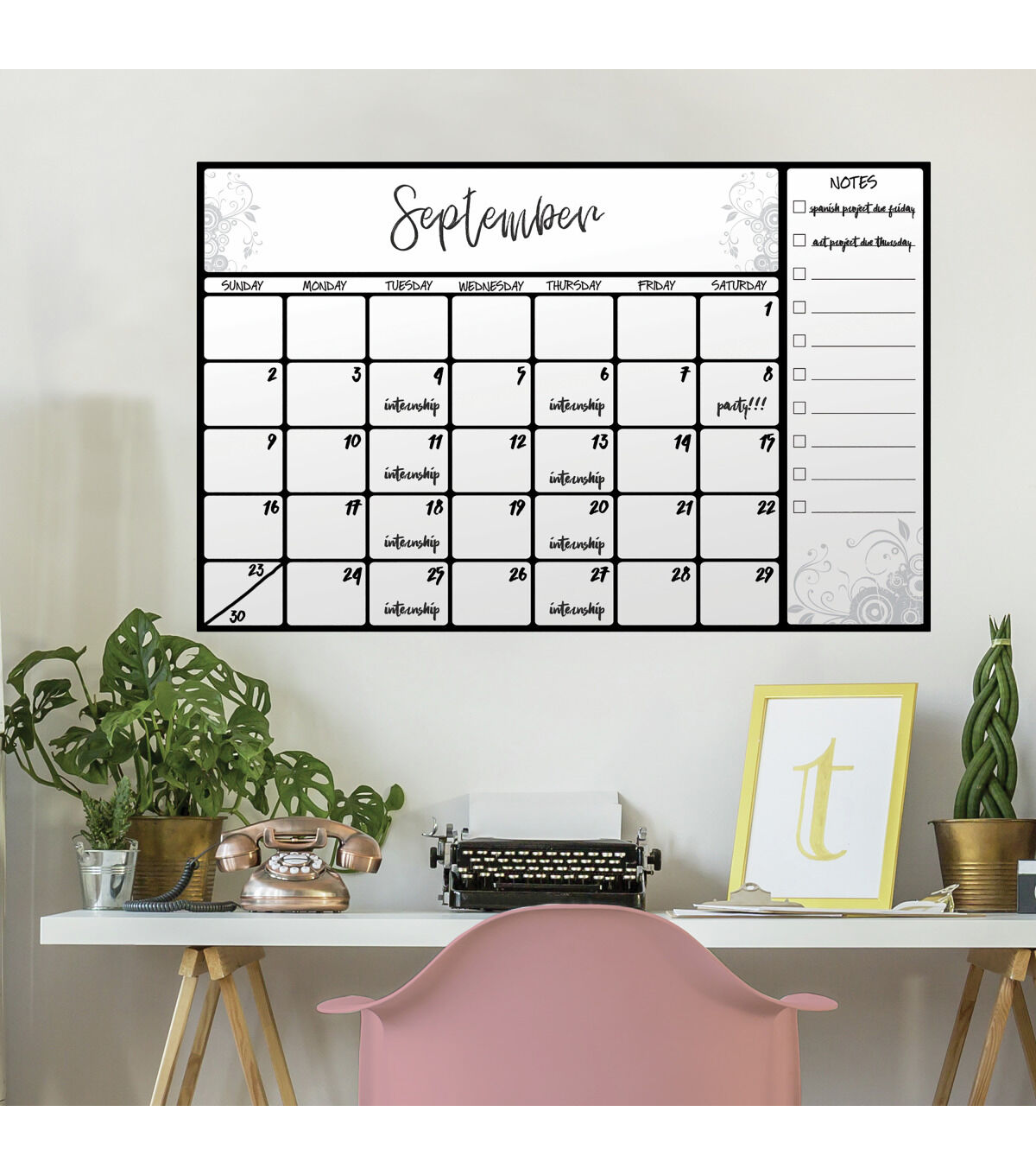 Don't miss another important event with this peel and stick dry erase scroll calendar. The decal applies to any smooth surface, and because it is removable and repositionable, it can be used countless times. It has never been easier to plan your month or keep track of birthdays, holidays, or just due dates for schoolwork. Try it in any room of your home to stay organized!