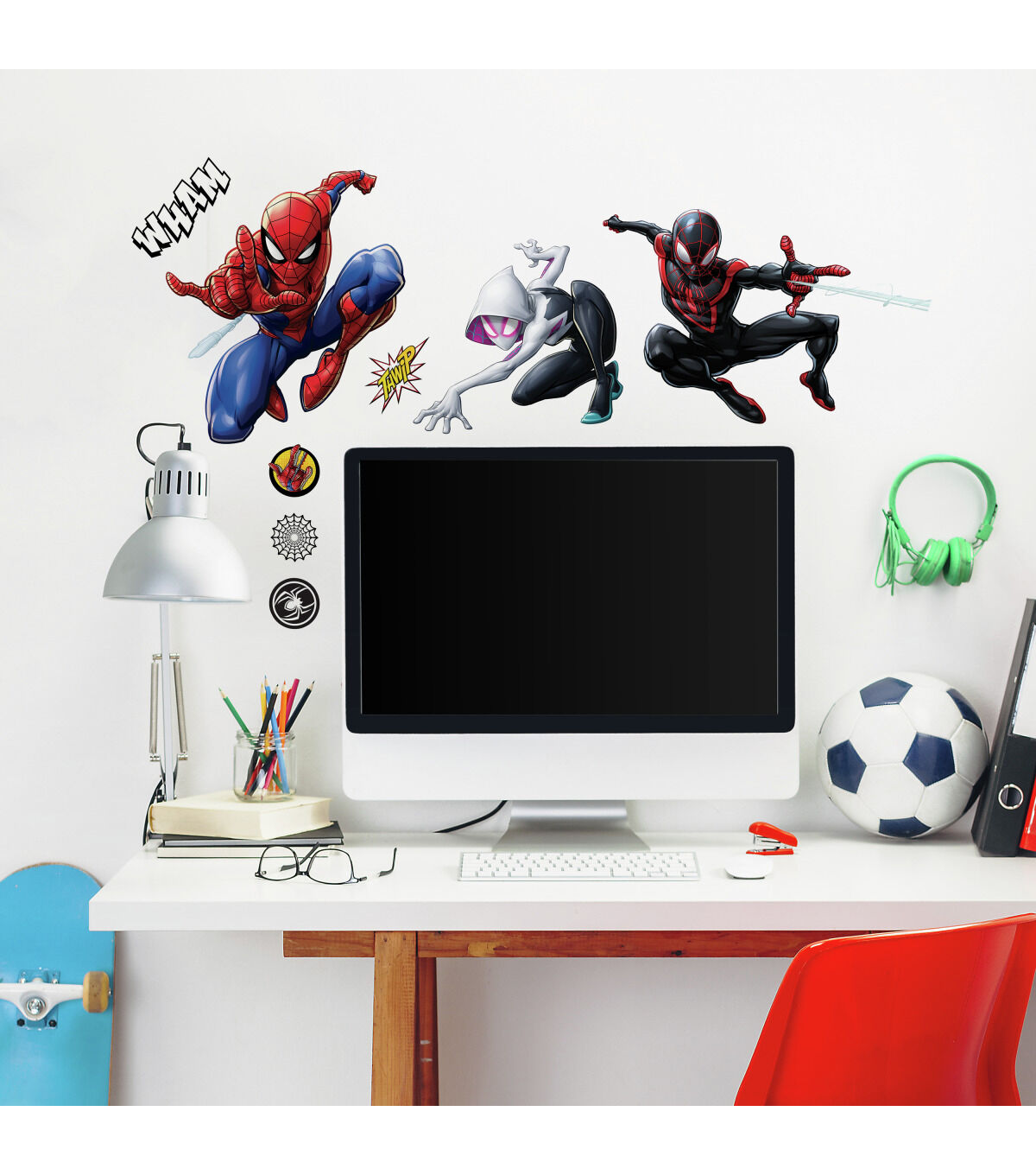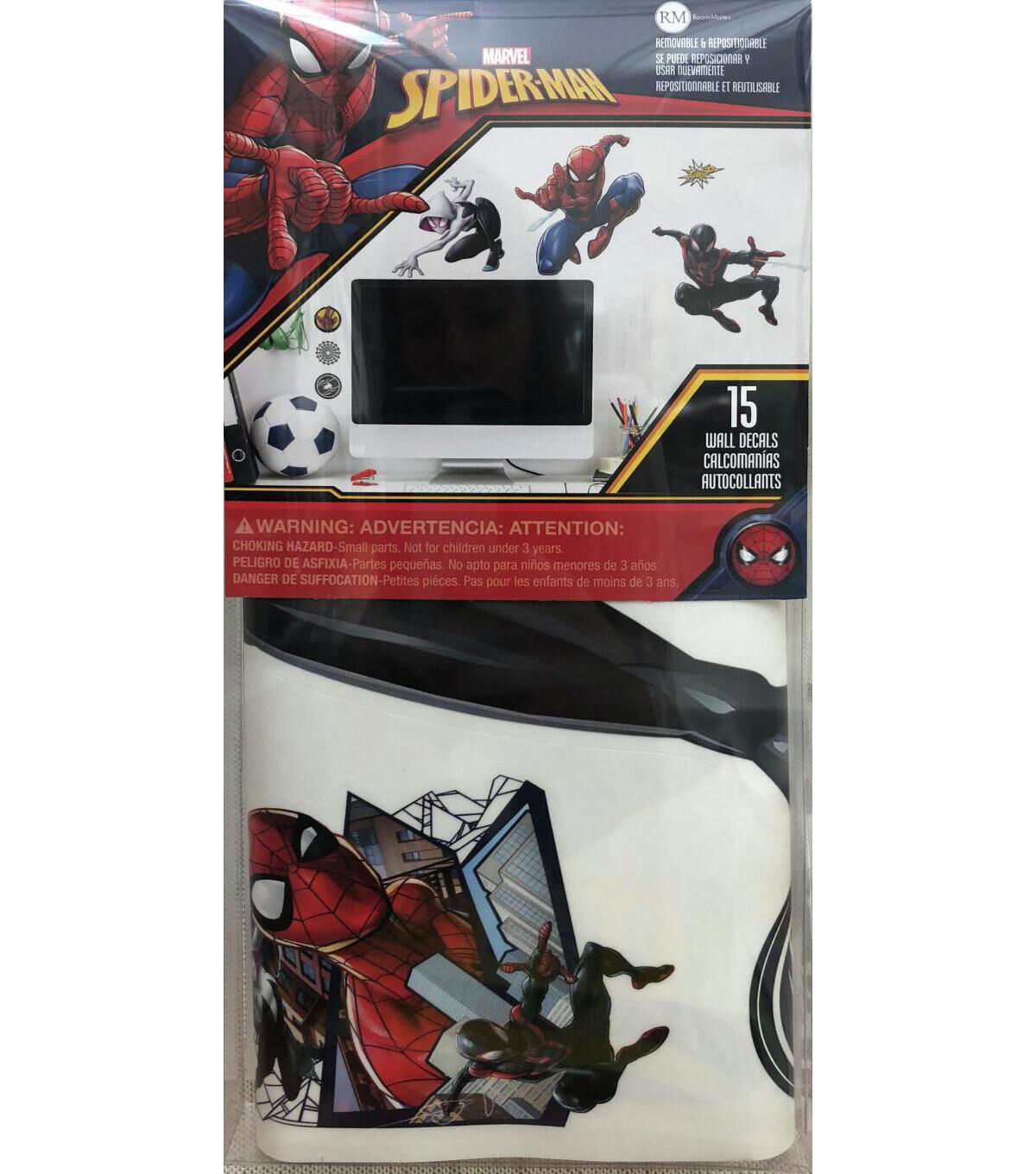 Decorate walls with Spider-Man Miles Morales Peel and Stick Wall Decals by RoomMates. Complete with 15 decals, this wall sticker set is a fun and creative way to transform any room in seconds. To apply, simply peel and stick decals to any smooth, flat surface. Remove, reposition and reuse as often as needed. Created with high quality vinyl that's made to last, walls stay completely safe, and sticky residue is never left behind. It's fast, fun and affordable wall decor at it's best.