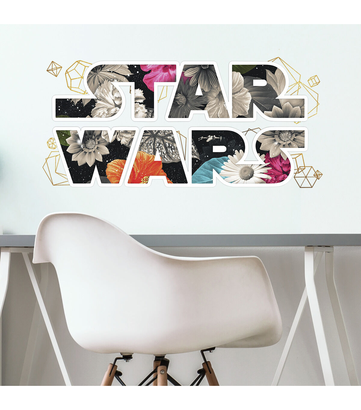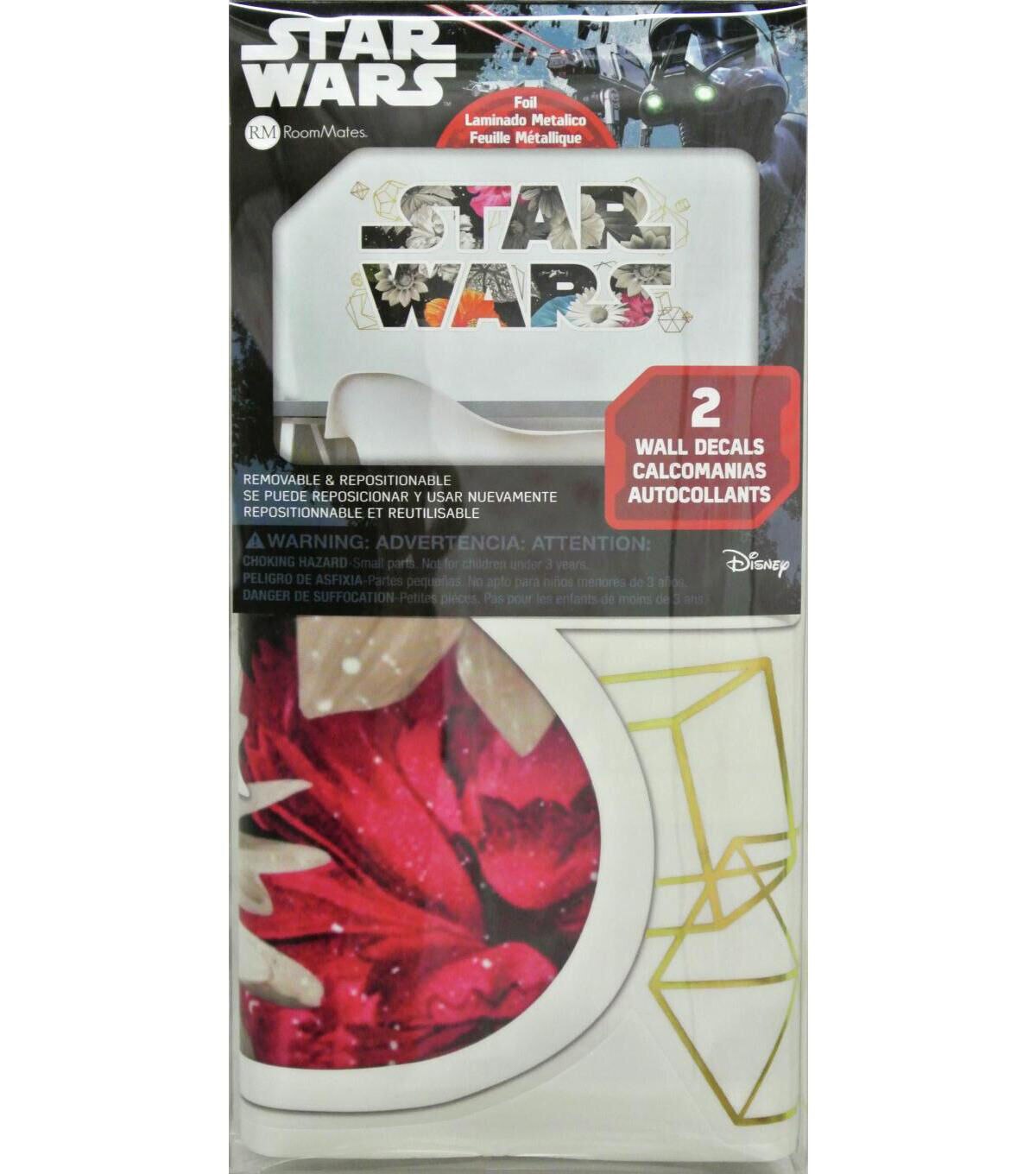 Walls instantly come to life with Star Wars Floral Logo Peel and Stick Wall Decals with Foil by RoomMates Decor. Complete with 2 large wall decals, decorate your room in seconds. The application process is fast and easy. Simply peel and stick decals to any smooth, flat surface. Remove, reposition, and reuse as often as needed while keeping walls and decals completely safe. Recreate this look in your room today with RoomMates.