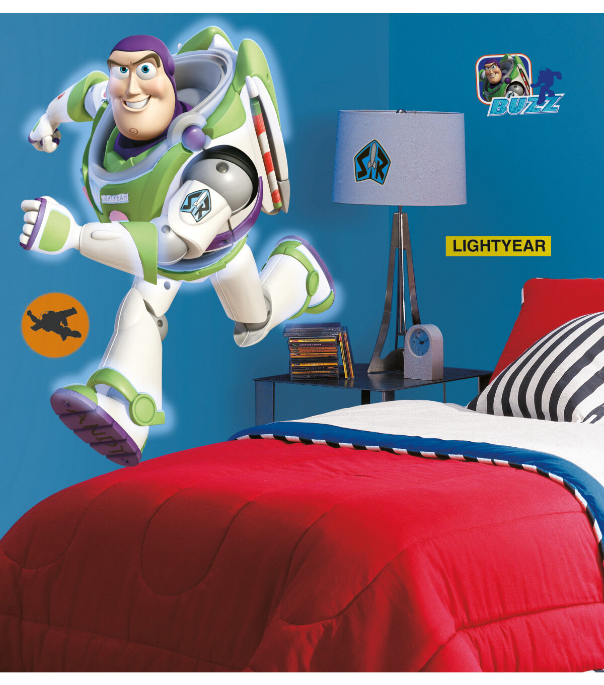 To infinity and beyond! Buzz Lightyear, the enthusiastic hero of Toy Story 3, can now adorn your walls in the form of this giant wall decal. Not only is Buzz big... he also glows in the dark! How's that for impressive? Mix and match Buzz with our giant Woody and Jessie decals, or our Toy Story 3 wall decal set (all sold separately) for a full room makeover.