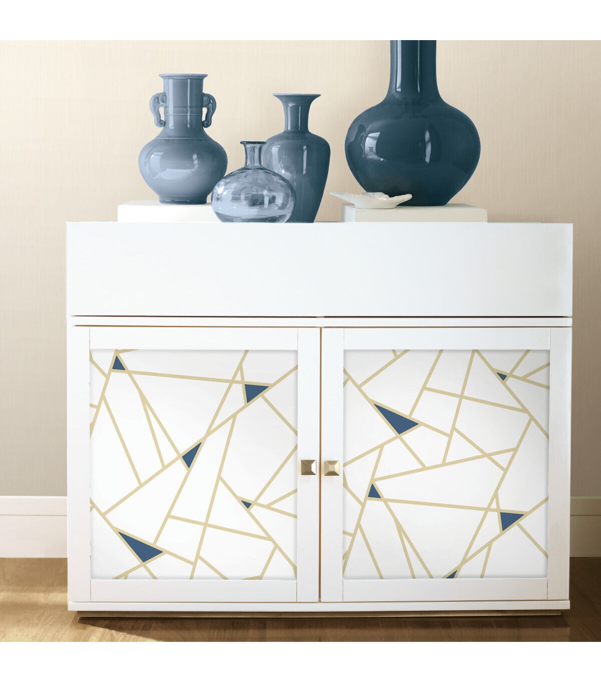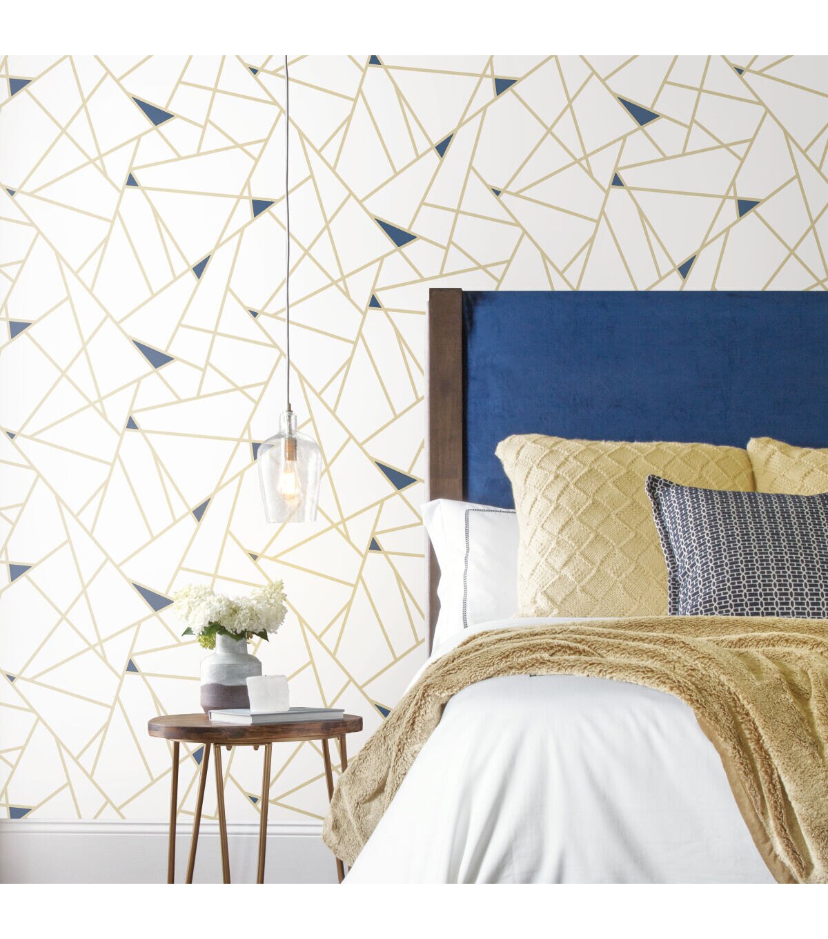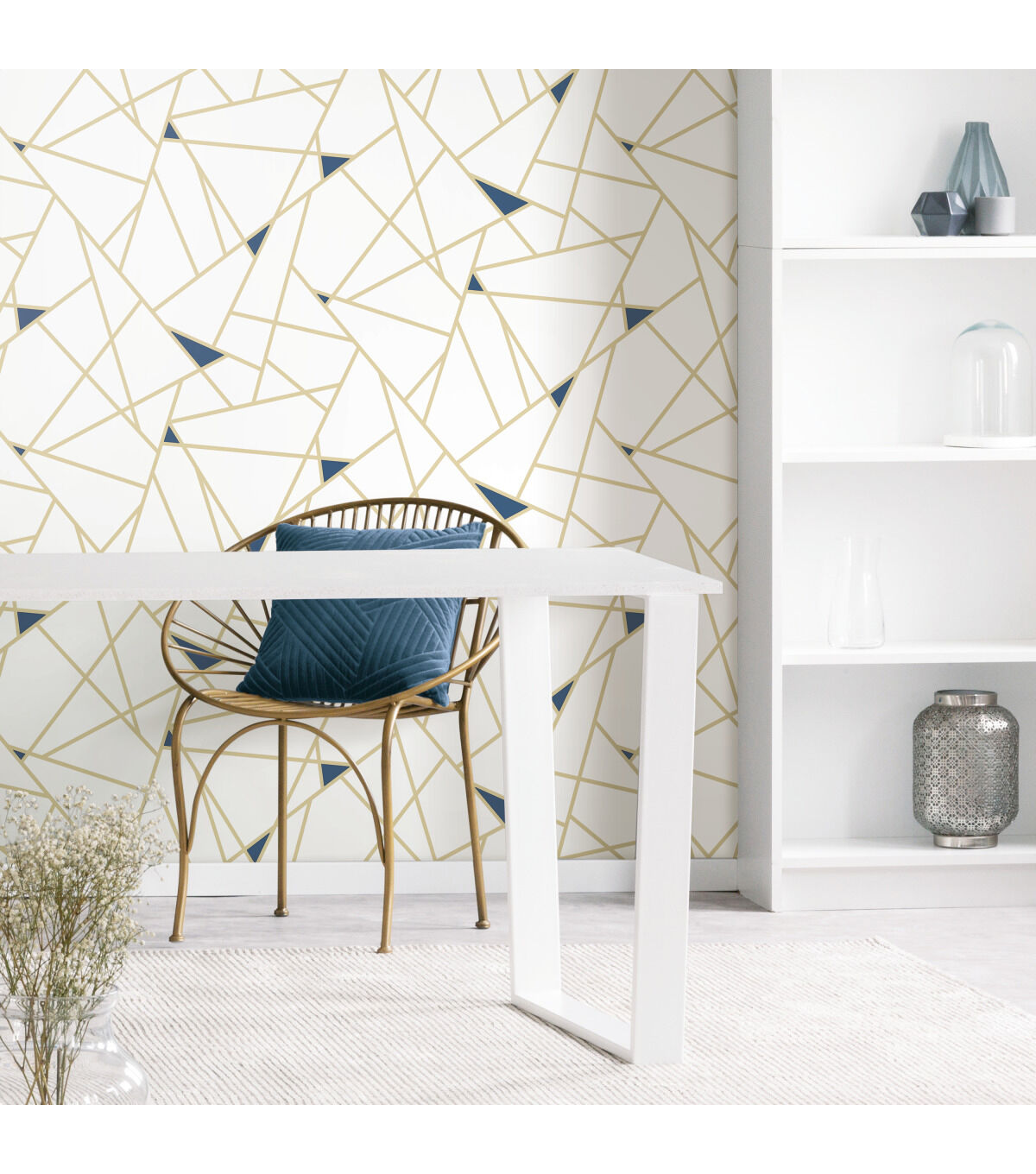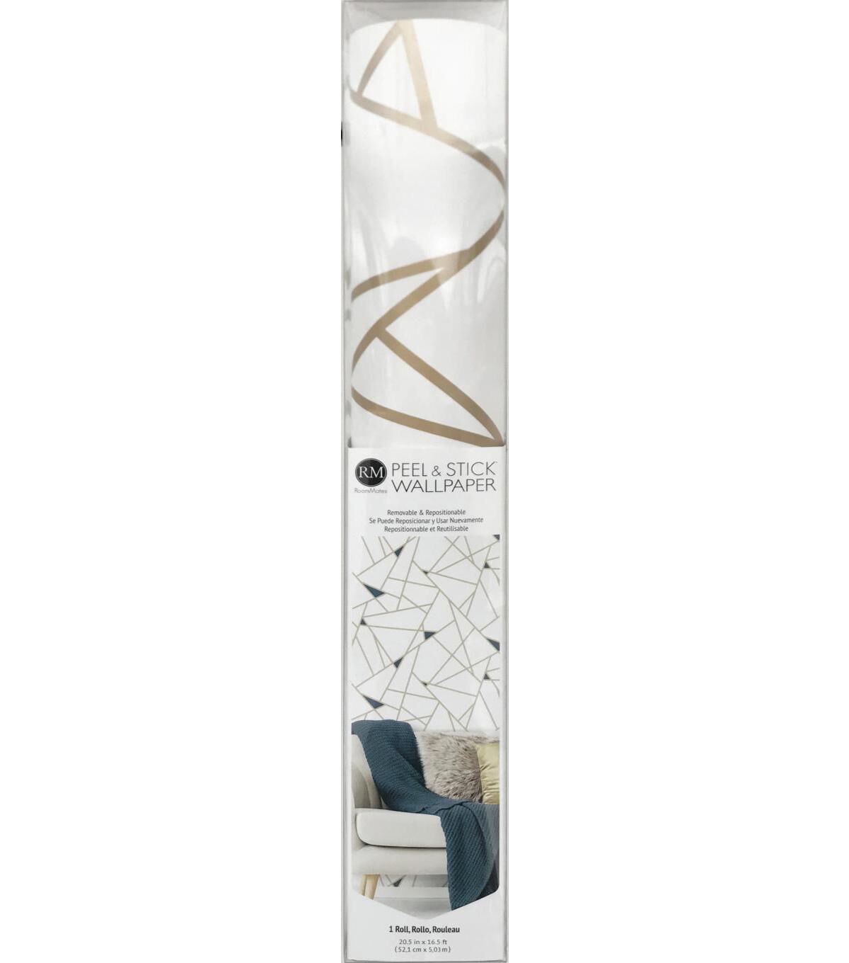 Give walls an edgy transformation with Gold Fracture Peel and Stick Wallpaper by RoomMates. This bold geometric pattern creates a designer loft vibe with minimal effort. Modern and minimal, create a charming in minutes with our peel and stick technology. Simply peel from the backing and stick to any smooth surface of your choice. From walls to furniture and more, create a come you'll love with peel and stick wallpaper from RoomMates.