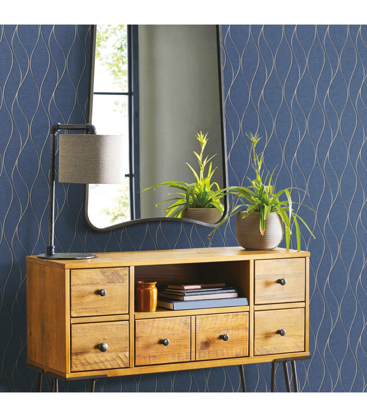 Simple yet statement making, Navy Wave Ogee Peel and Stick Wallpaper is sure to catch the eye of everyone who enters your home. This graceful geometric pattern creates a designer look with minimal effort. Modern yet timeless, create an elegant room in minutes with our peel and stick technology. Simply peel from the backing and stick to any smooth surface of your choice. From walls to furniture and more, create a come you'll love with peel and stick wallpaper from RoomMates.