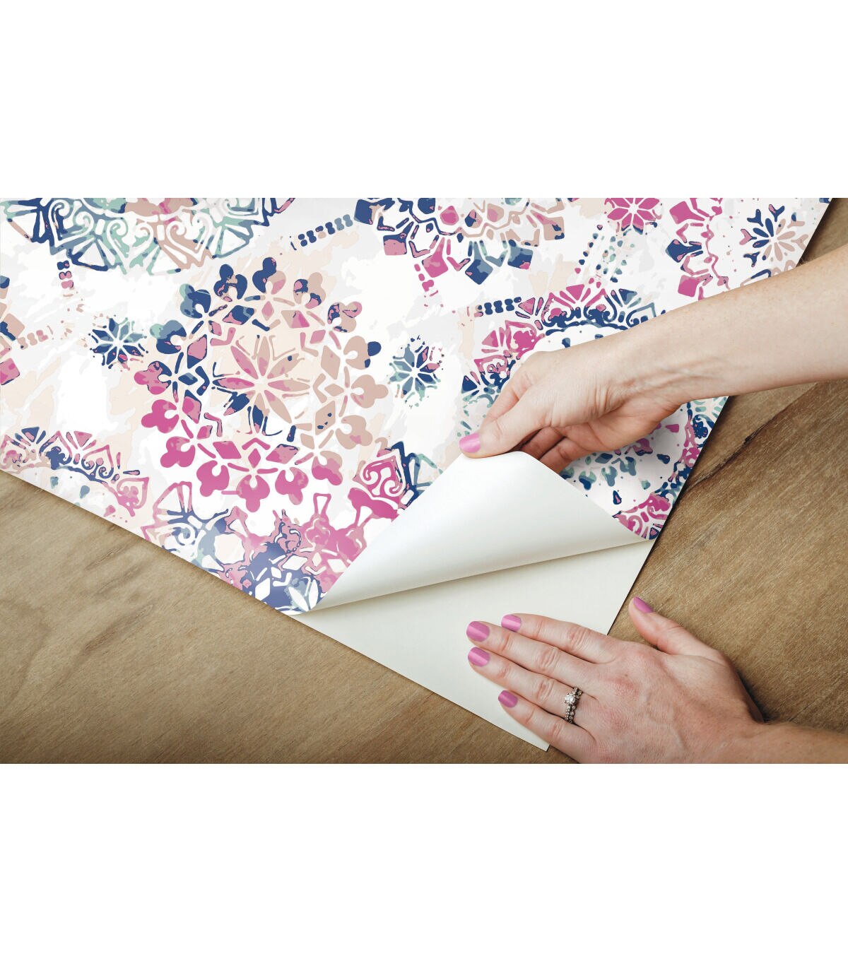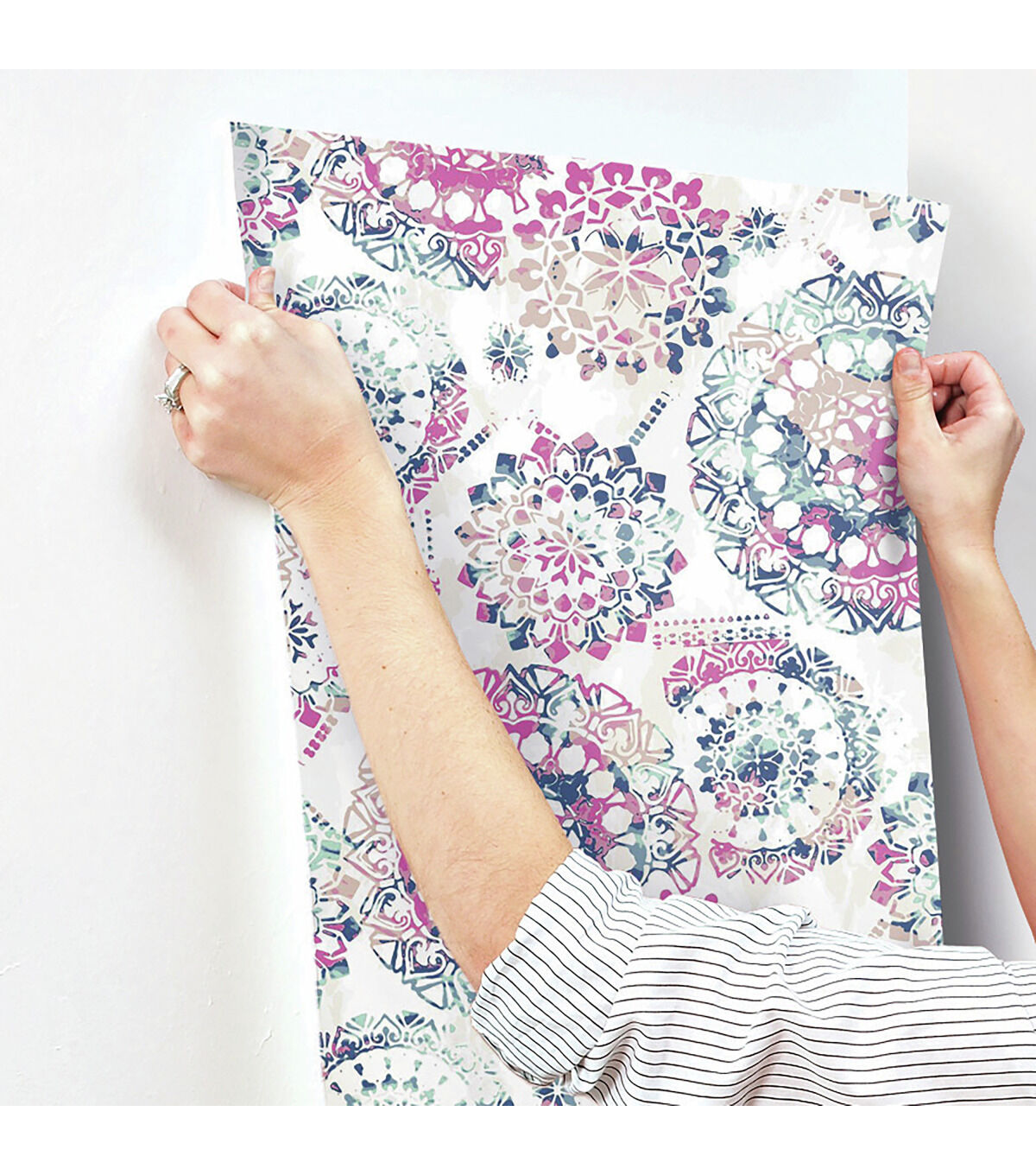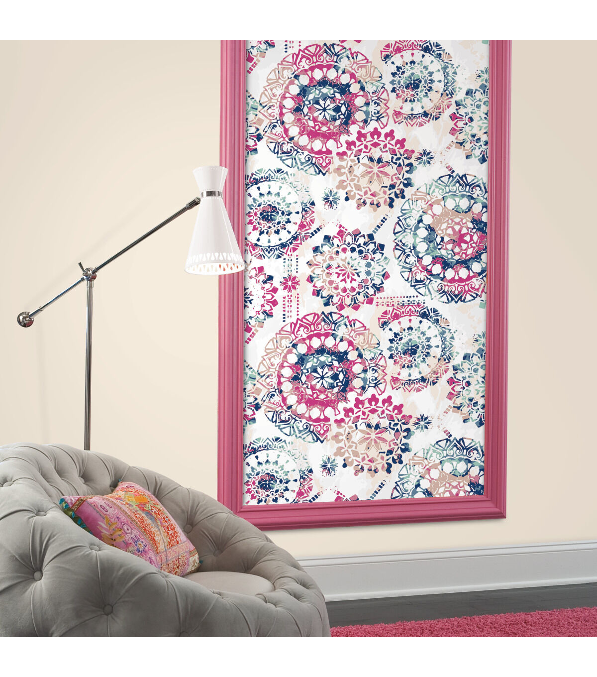 Sophisticated and chic, add instant flair to any space or decor with Pink and Blue Peel and Stick Wall Decor. From walls to DIY crafts, splash this modern bohemian pattern on any clean flat surface in minutes. Install with two easy steps - just peel and stick! Plus, it's removable making it the ultimate temporary decorating solution. Completely safe for walls, Peel and Stick Decor leaves surfaces free of sticky residue. Fast, fun and affordable!