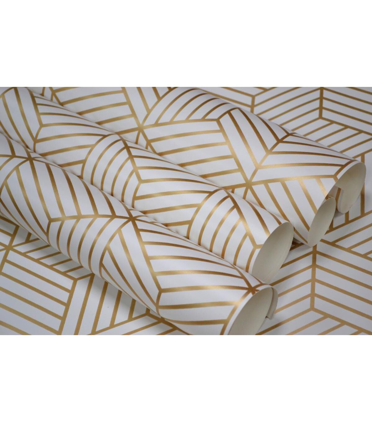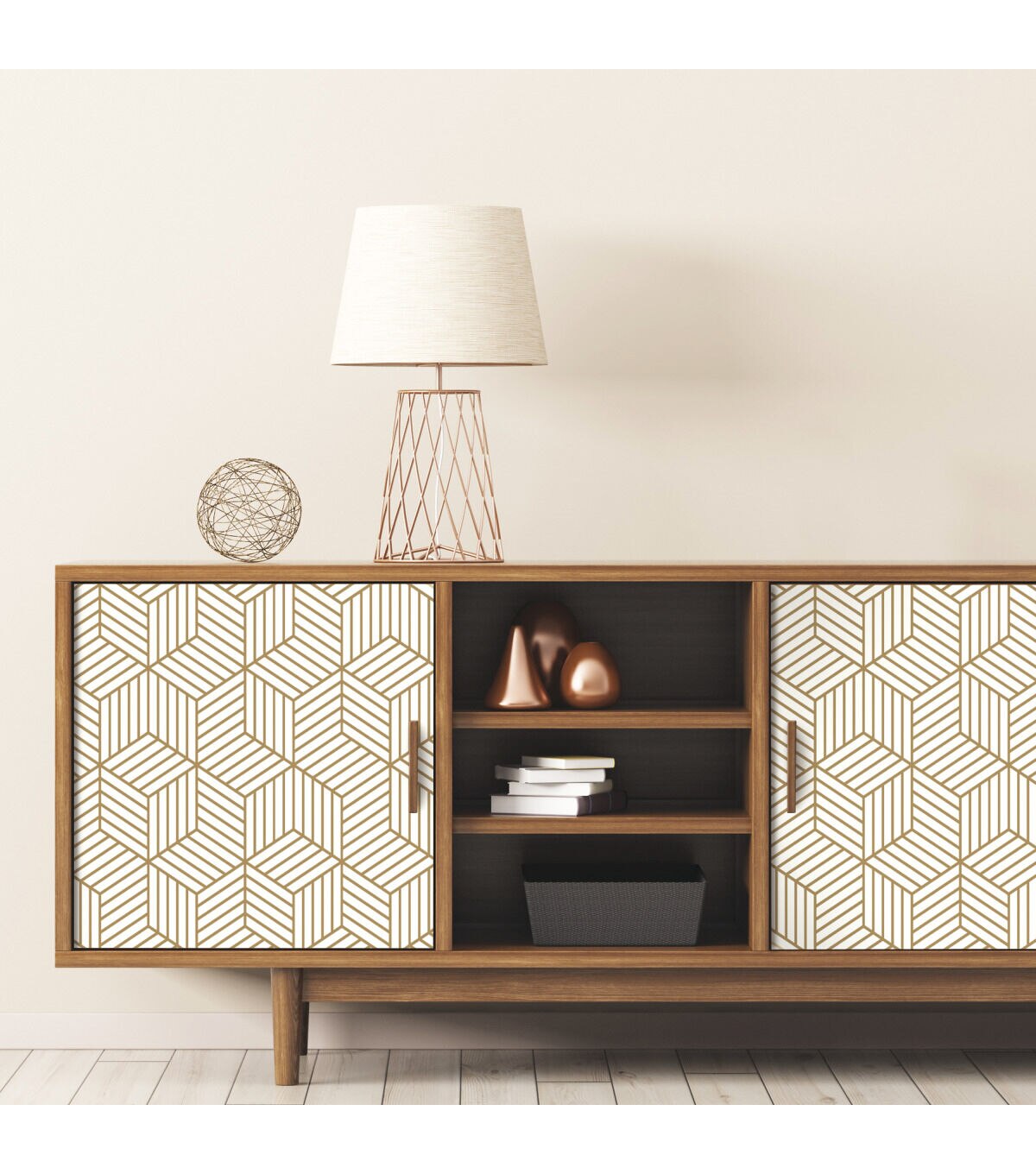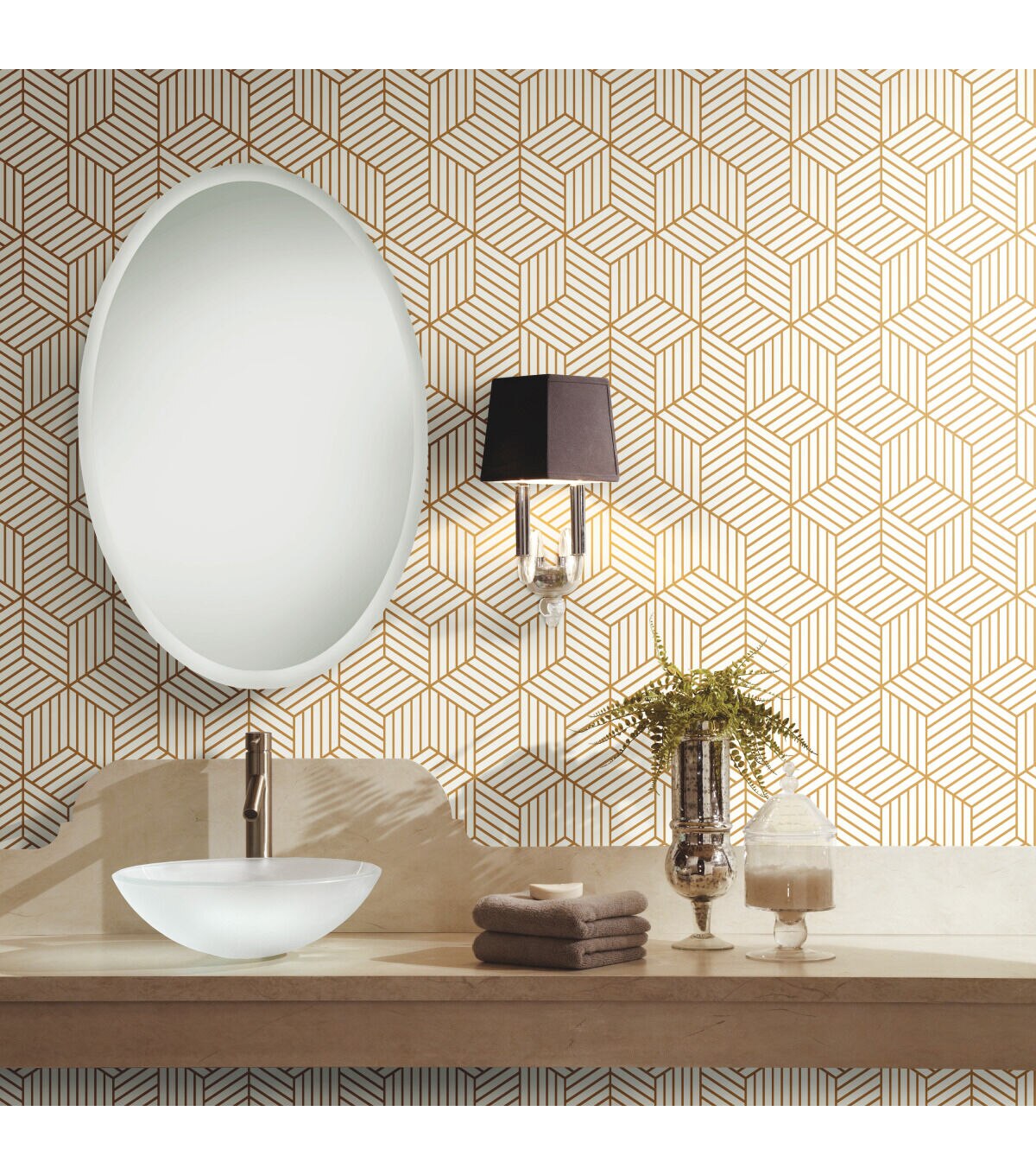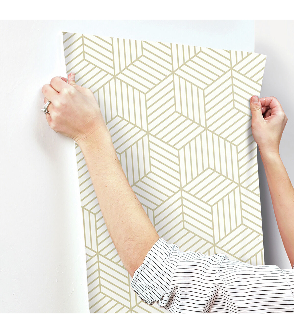 Add bold geometrics to your space with Stripped Hexagon White and Gold Peel and Stick Wallpaper by RoomMates. Offering a fun and fresh way to decorate, Peel and Stick Wallpaper is printed on high quality vinyl that is repositionable and removable, making it a go-to, budget-friendly choice for both temporary and permanent projects. Perfect for accent walls, furniture, backsplashes, DIY decor, and more, simply peel and stick to install. Completely easy, create endless style-worthy possibilities with RoomMates Peel and Stick Wallpaper.