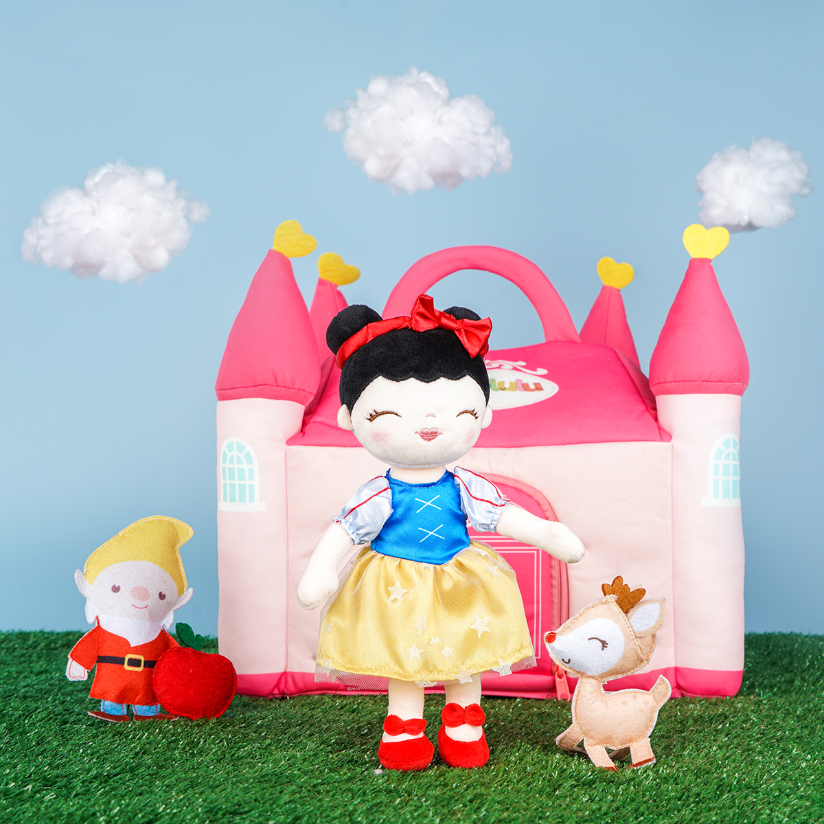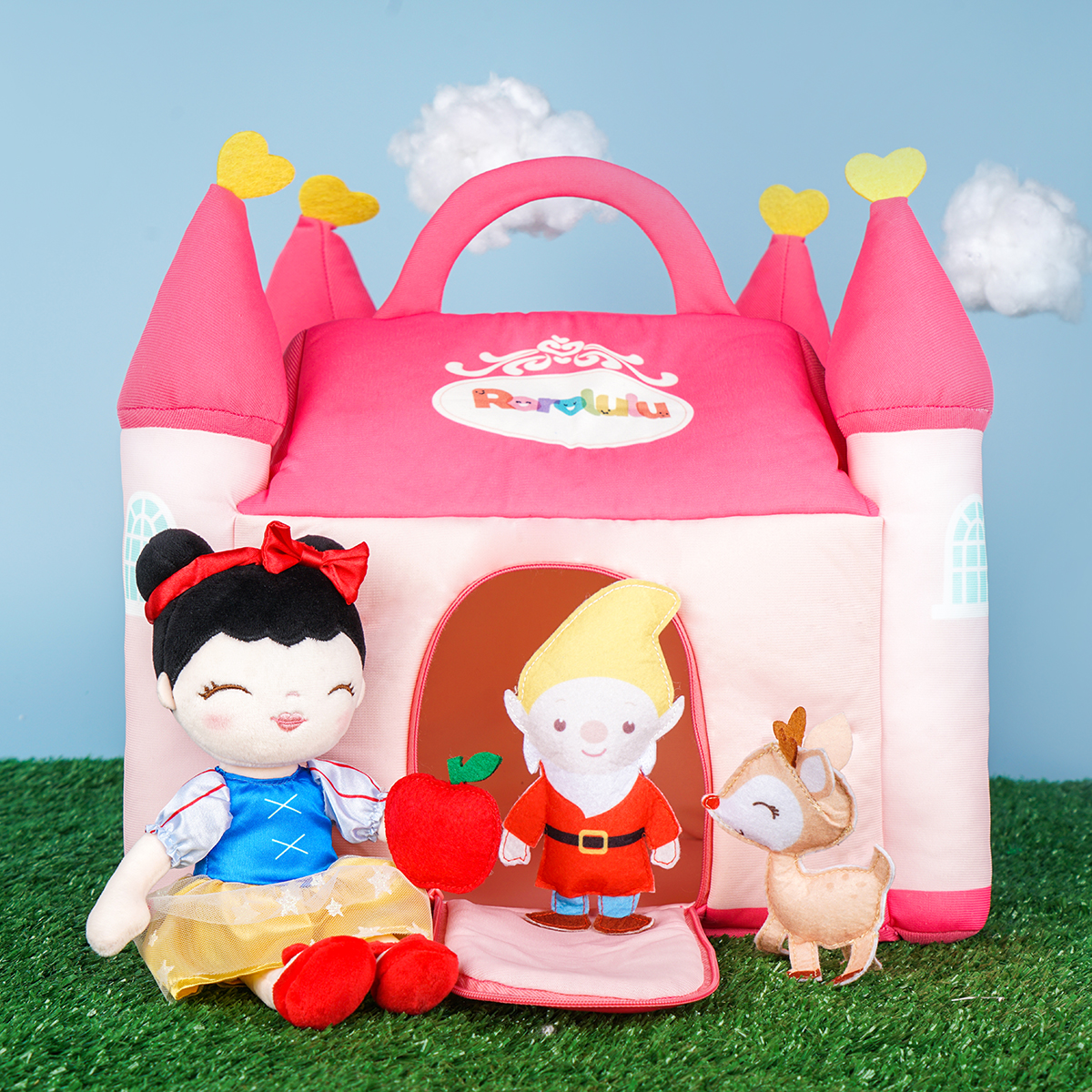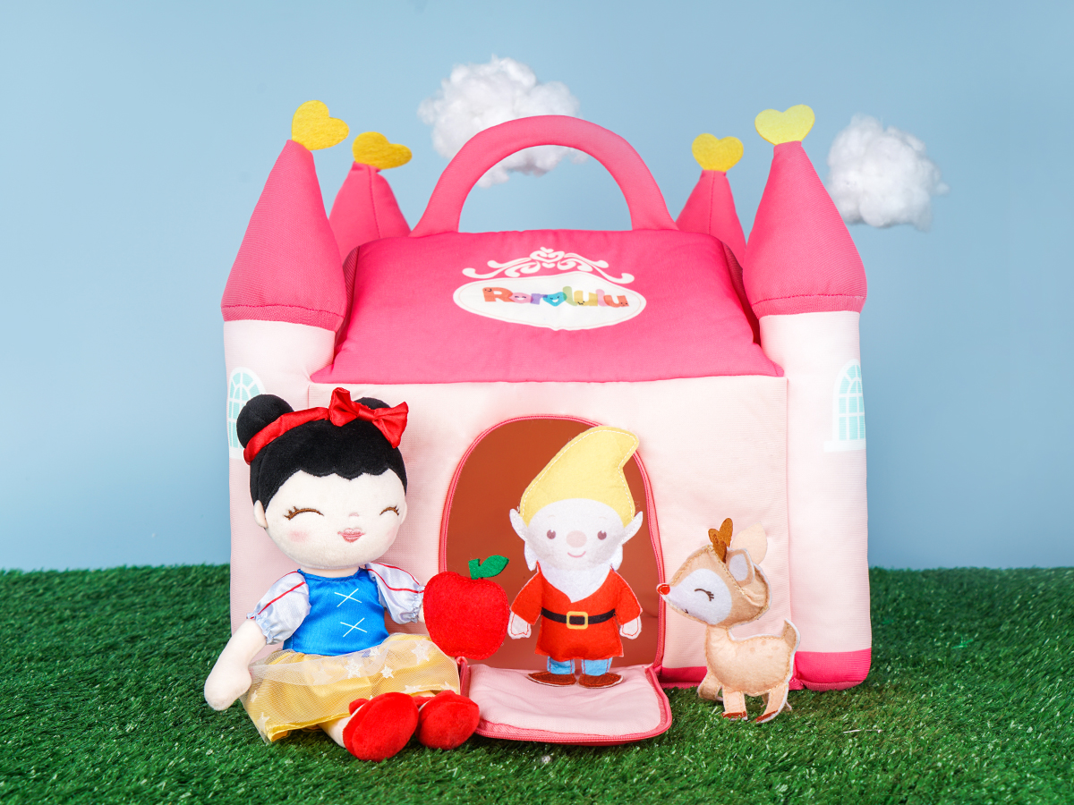 A messy house means happy kids. As parents, we understand very well that kids tend to be messy. The hygiene of baby's toys is one of the most important things for mothers, therefore we designed our products to be completely machine washable to save you the hassles. And we strategically designed the castle to be 13.78*9.84*12.99 inches(35*25*33cm), and the snow princess 9.84 inches(25cm), which is suitable for babies to carry when they go to kindergarten, primary school, or out for any outdoor activity.