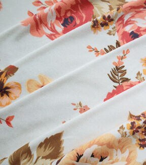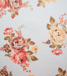 Rose Cluster on White Jersey Knit Fabric