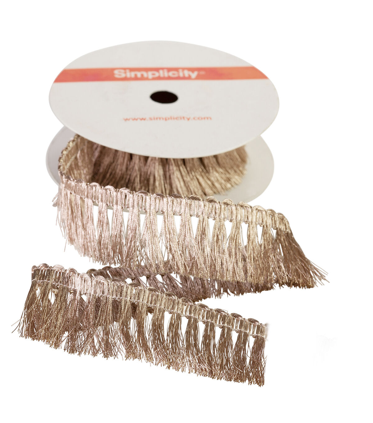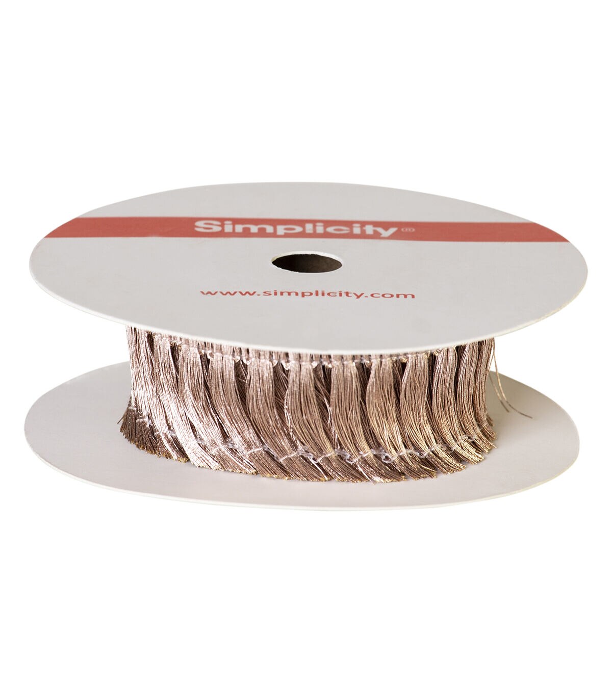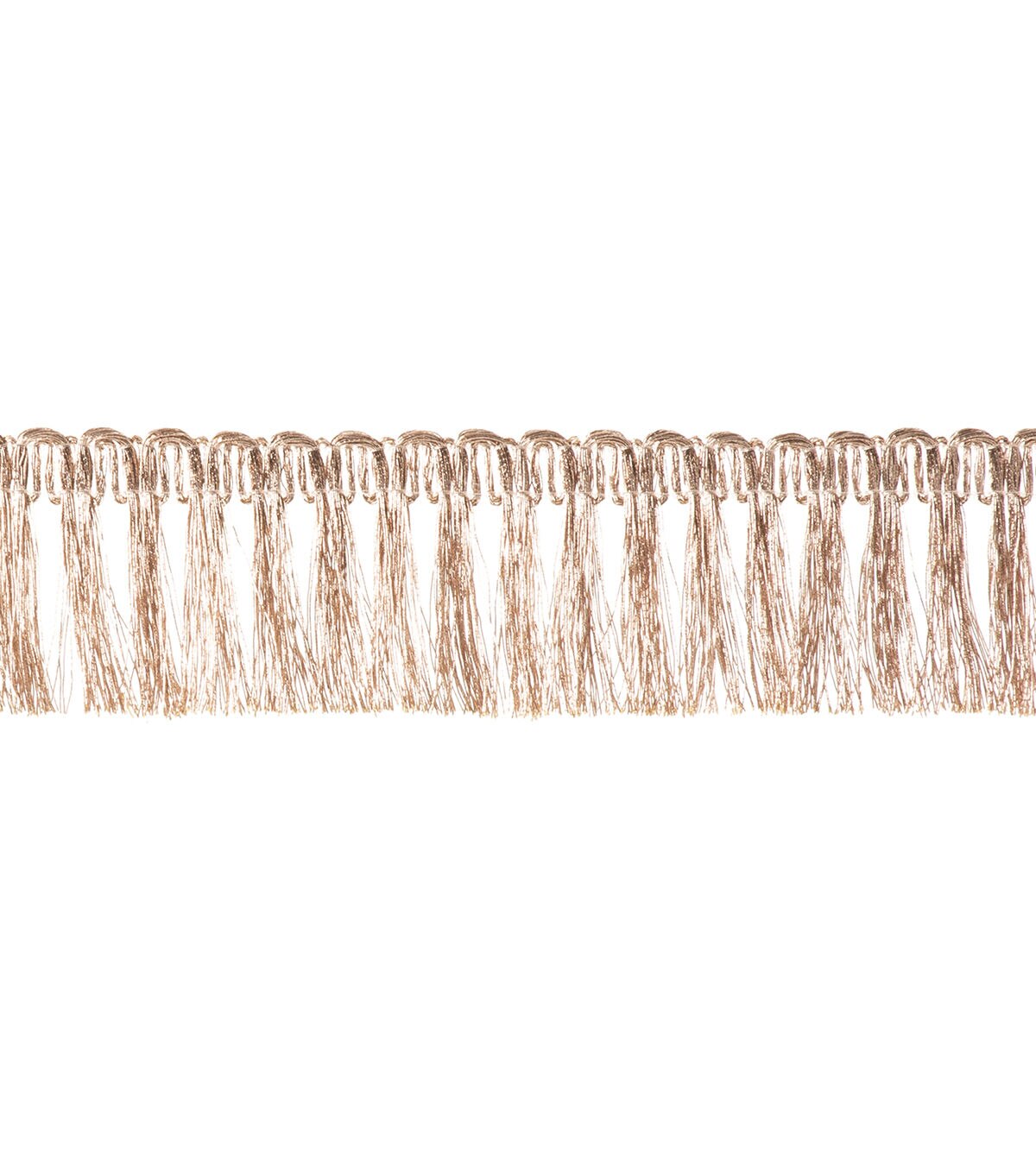 This 1 inch rose gold fringe trim is a polyester/nylon blend. Use this easy trim for apparel design, home décor inspirations and so much more!