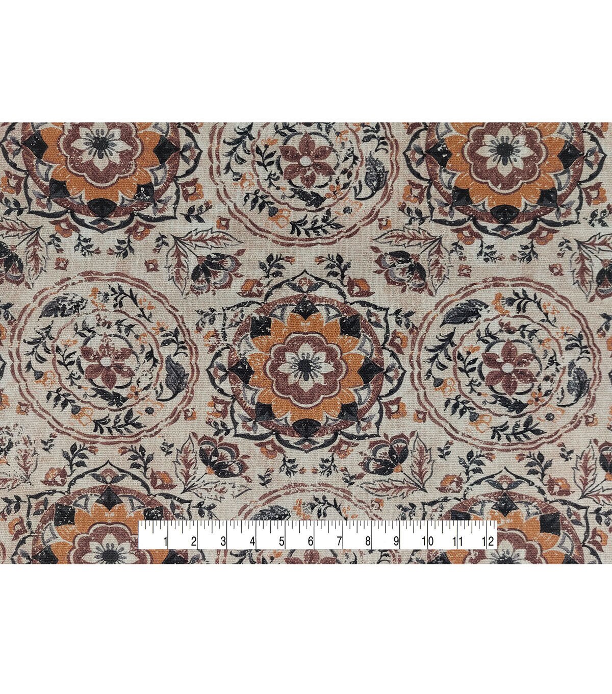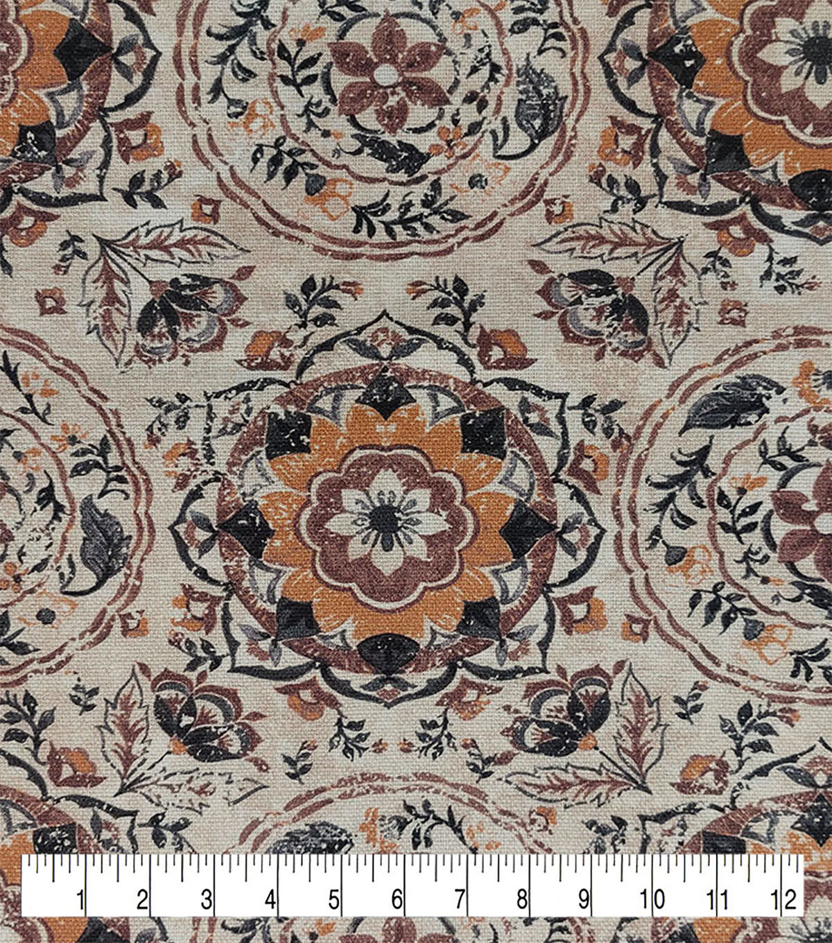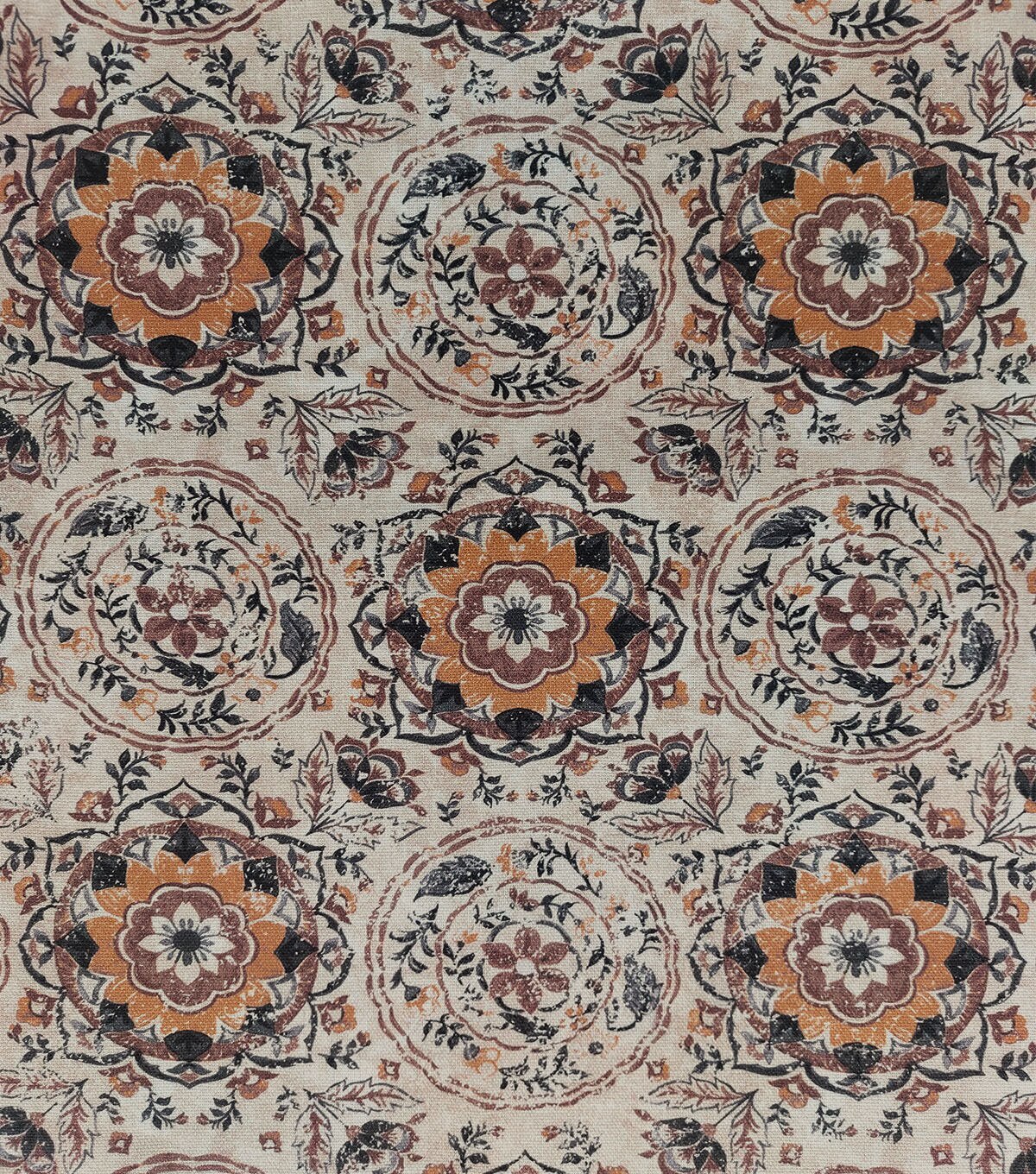 • Round Medallion Tan Cotton Canvas Fabric