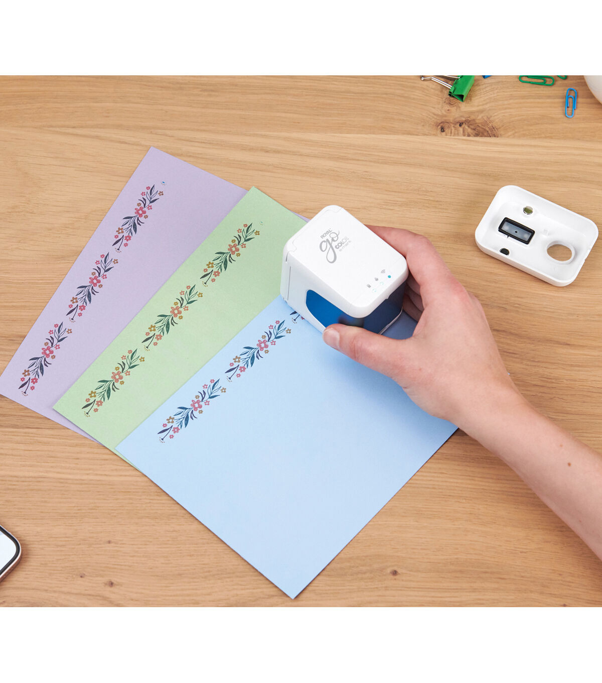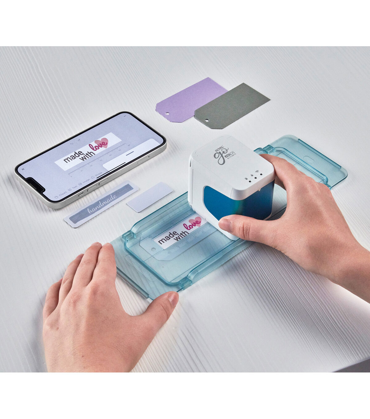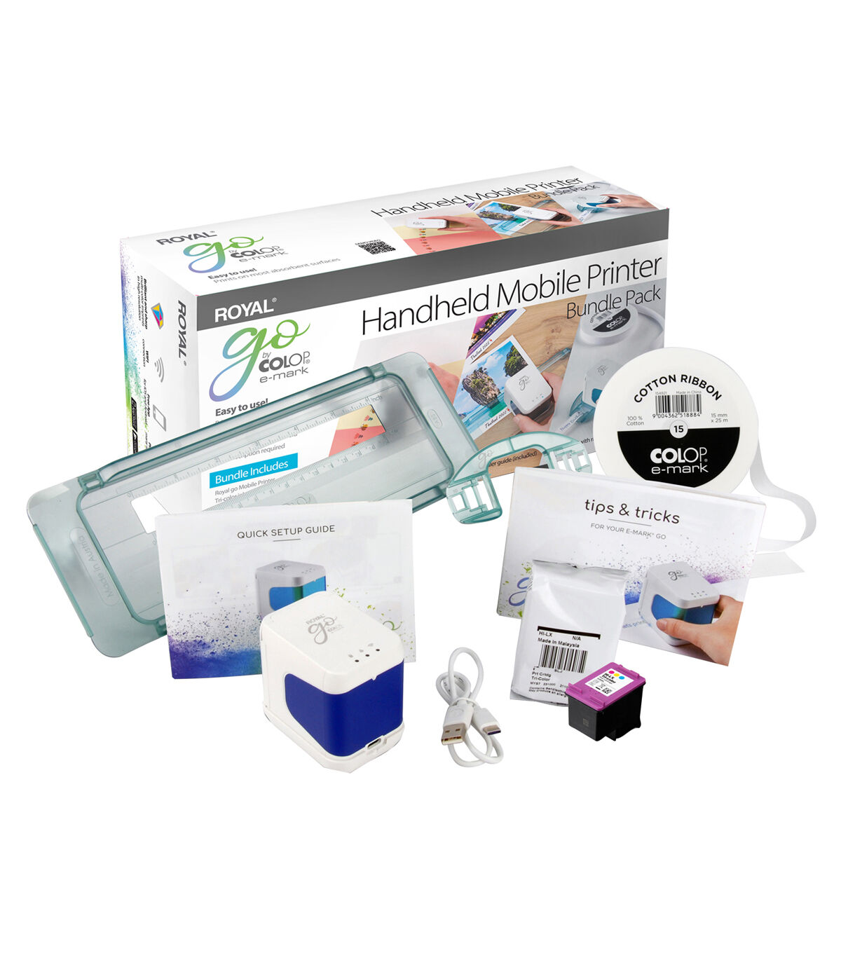 The Royal e-mark go Handheld mobile printer is compact and easy to use. Easily print multicolor imprints on many different surfaces.